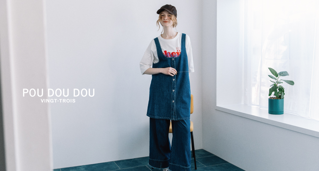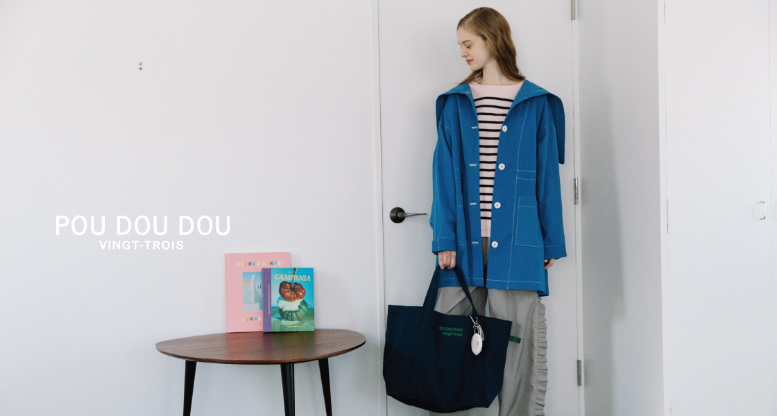 POU DOU DOUロゴ刺繍キャンバスバッグ