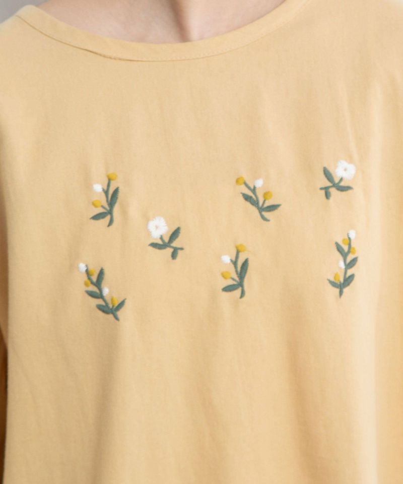 柔らかく暖かみのある綾織りコットンの起毛素材で仕立てたブラウス。フロントのボタニカル刺繍がポイントです。インナーにニットを合わせるスタイルもオススメ。前後差のある着丈でこなれた雰囲気に。袖口はゴムの仕様でまくりやすくしています。後ろあきのボタンはさりげなく配色にしています。