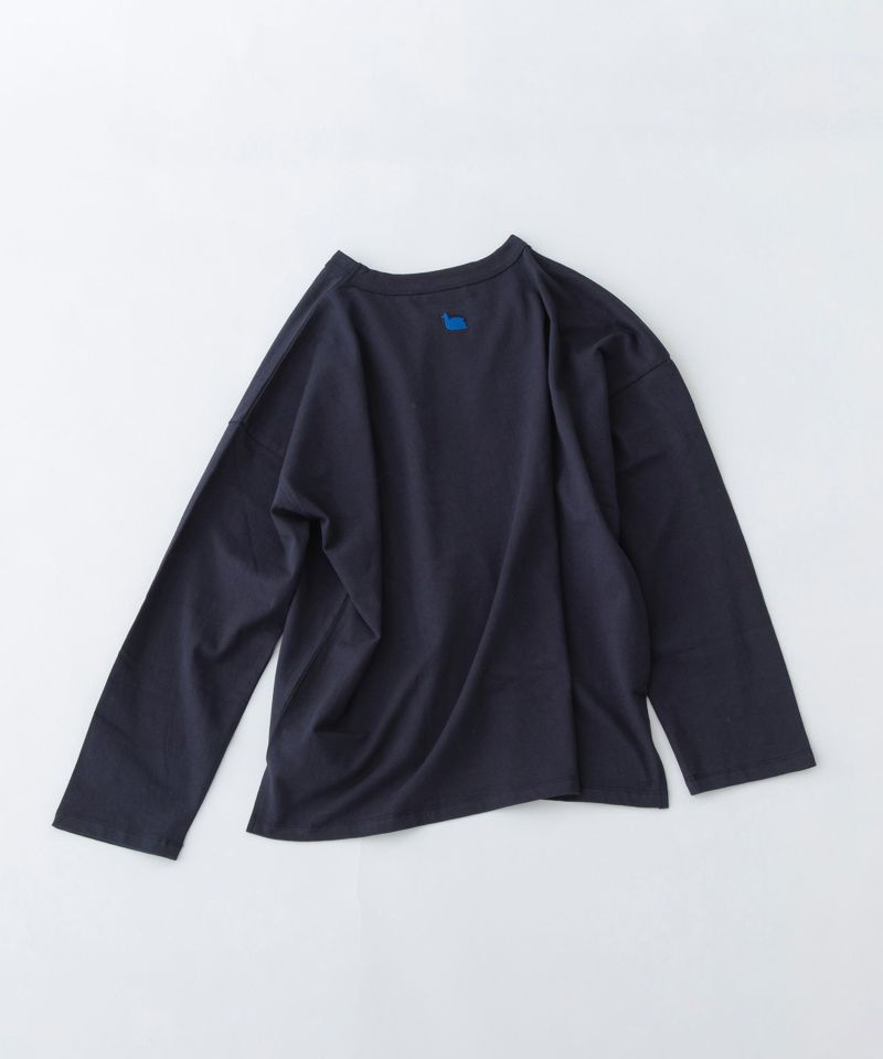 ・後ろネック下にトレードマークのスワン刺繍があります。