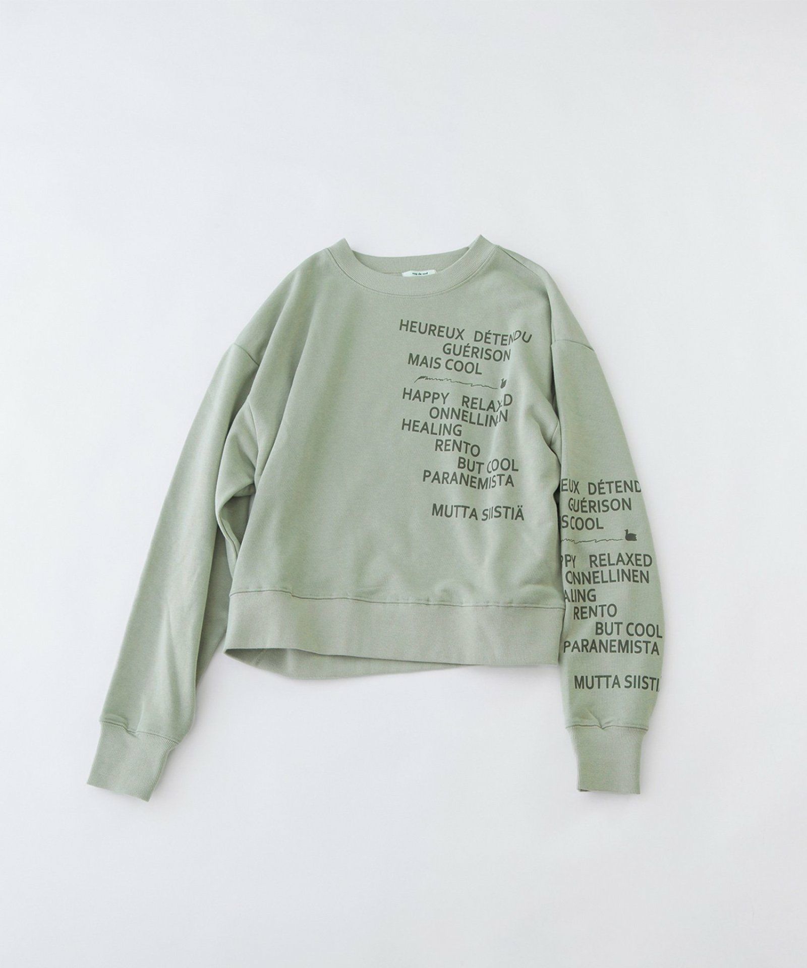 HRUプリント袖ライン裏毛プルオーバー