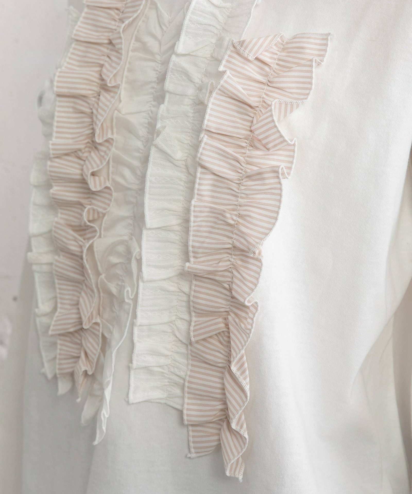 コットンフリル6分袖Tシャツ