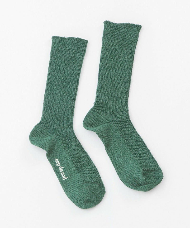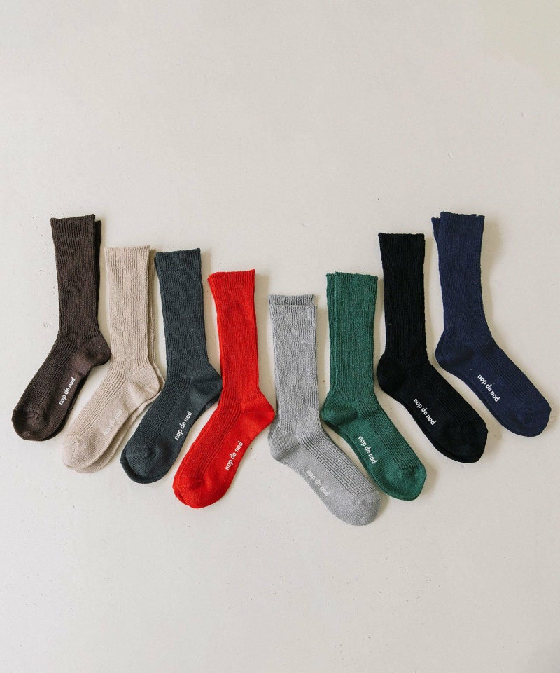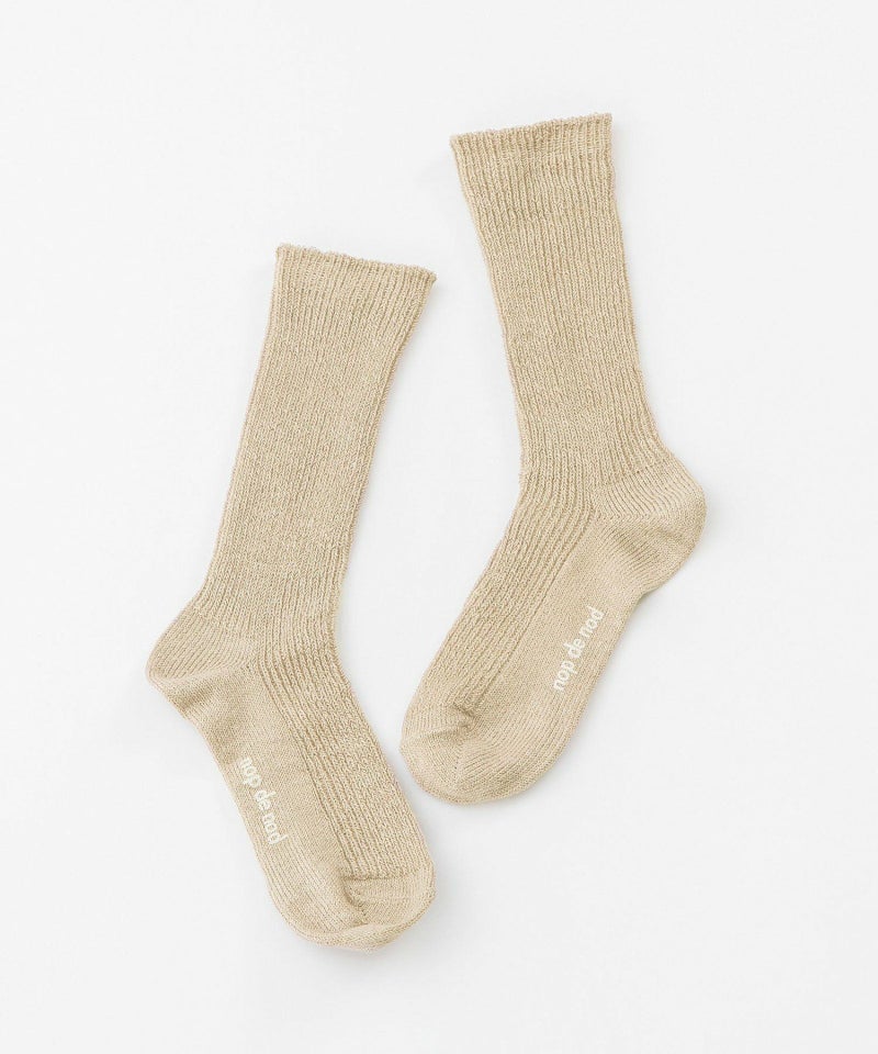 日本製 国産アサロード糸で光沢感、なめらかさとやわらかい履き心地のリネン ソックスを作りました。麻は伸縮性なくすべりやすいのですが履き口だけでなく全体にウレタン糸をいれているので安定感があるリネンリブソックスです。清涼感があり、汗をしっかり吸収してくれるのでさらっと快適。吸湿性が高いので、乾きが早くお手入れもしやすい。長くご愛用いただける靴下です。