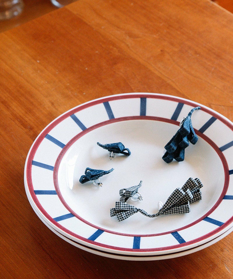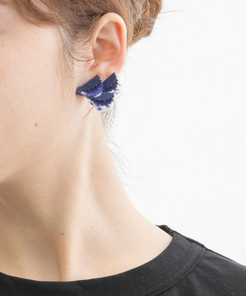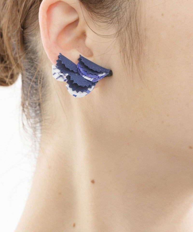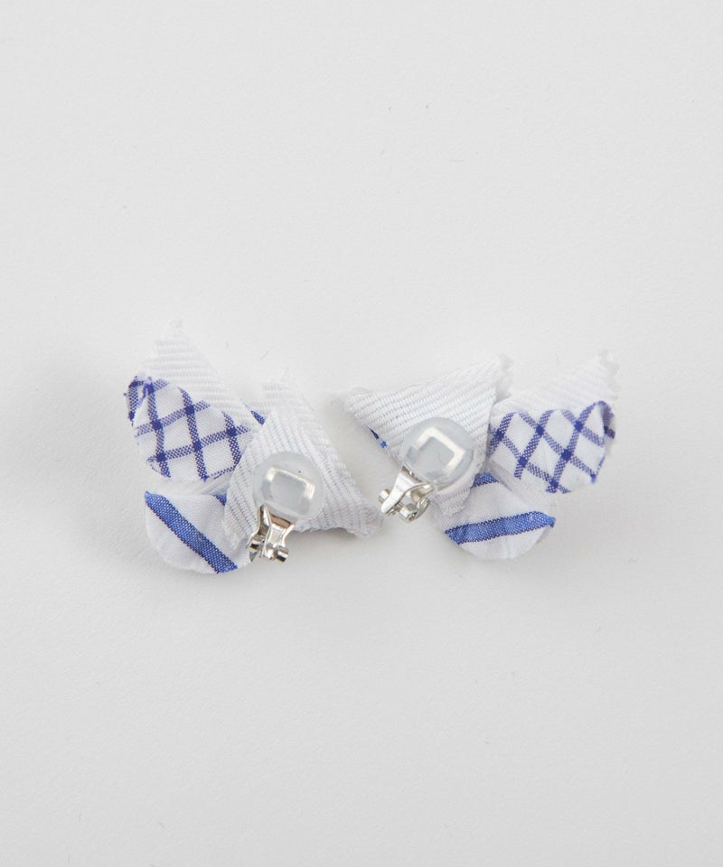 おなじみのストライプやウィンドウペンチェックを生地を使用して耳飾りを製作しました。