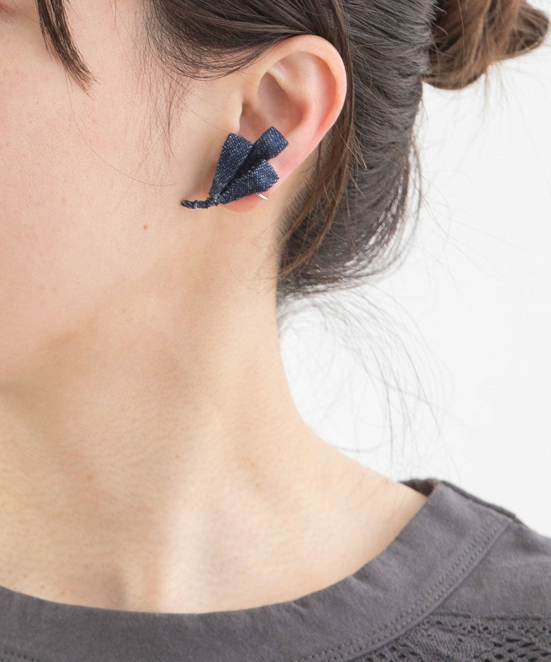 nop de nodのお洋服で使っている生地を使用して耳飾りを製作しました。