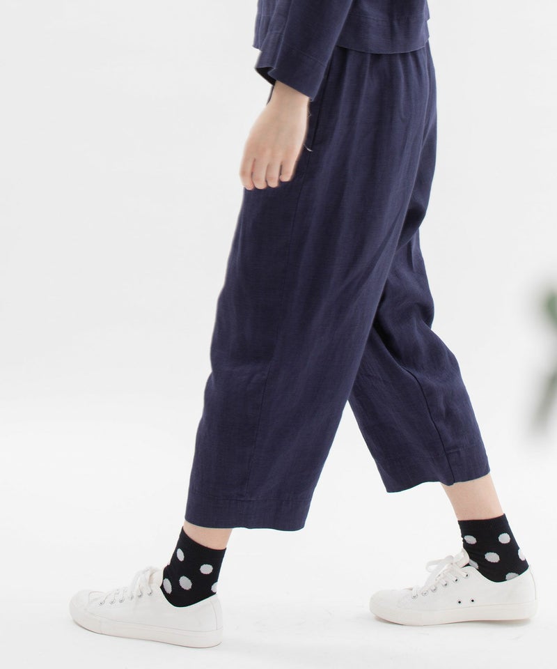 ドット柄がシンプルな着こなしのアクセントに。ベーシックカラーで使いやすいのもポイントです。ロングワンピースやPommeパンツからもちらりとのぞかせても可愛いです。職人さんによってひとつひとつ丁寧に作られています。