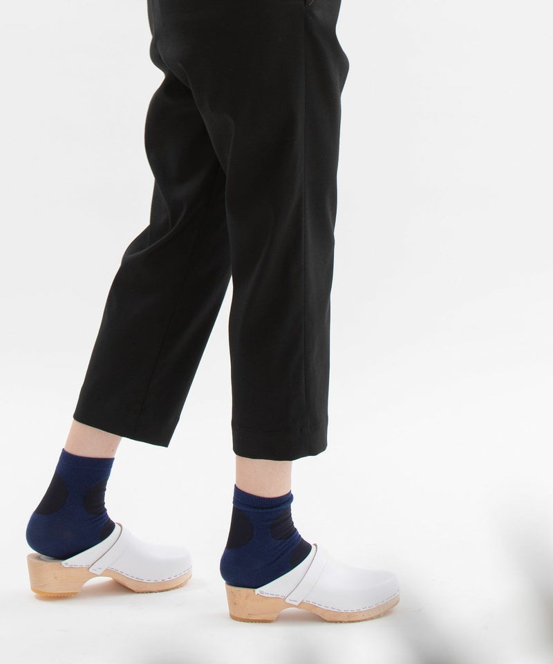大胆なドット柄がシンプルな着こなしのアクセントに。ベーシックカラーで使いやすいのもポイントです。ロングワンピースやPommeパンツからもちらりとのぞかせても可愛いです。職人さんによってひとつひとつ丁寧に作られています。