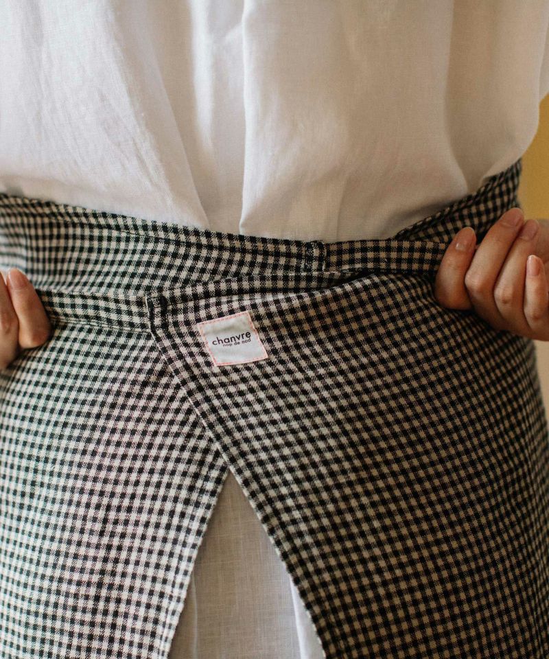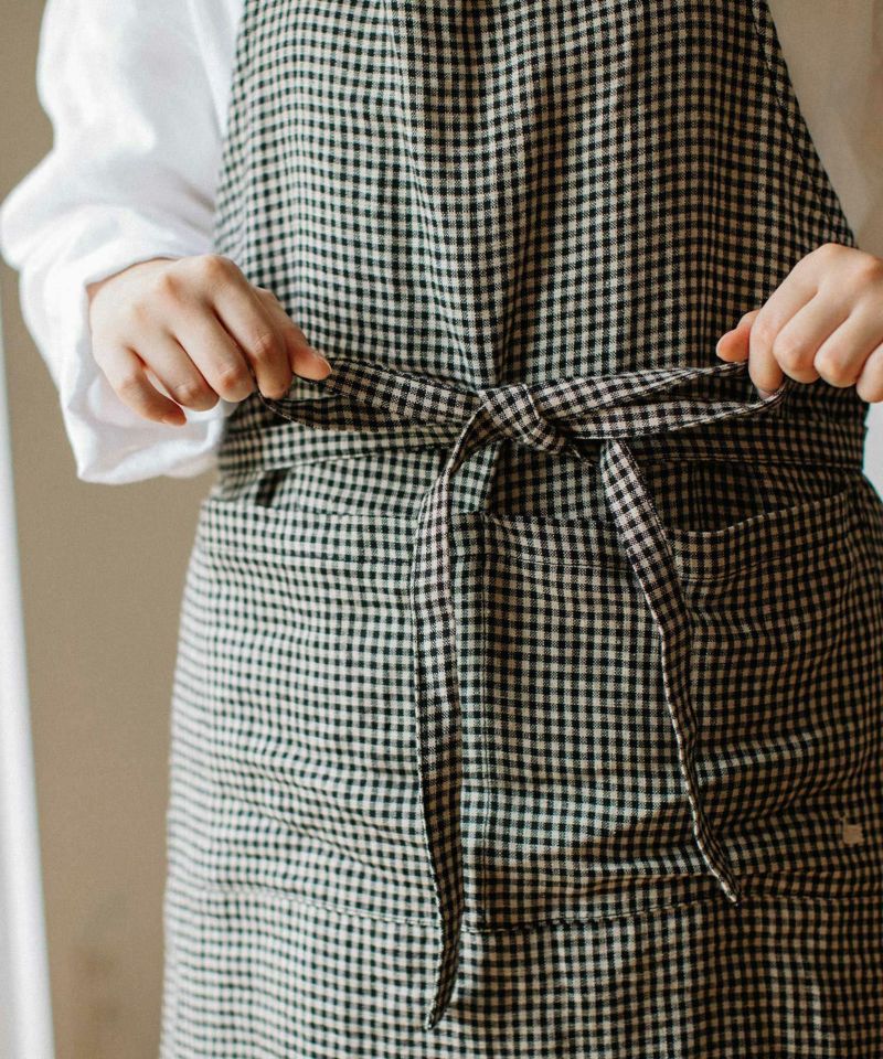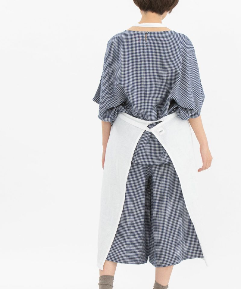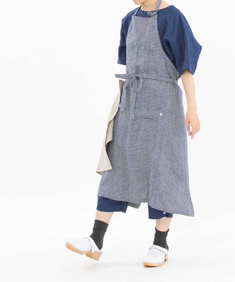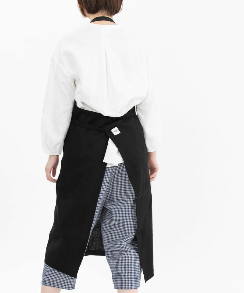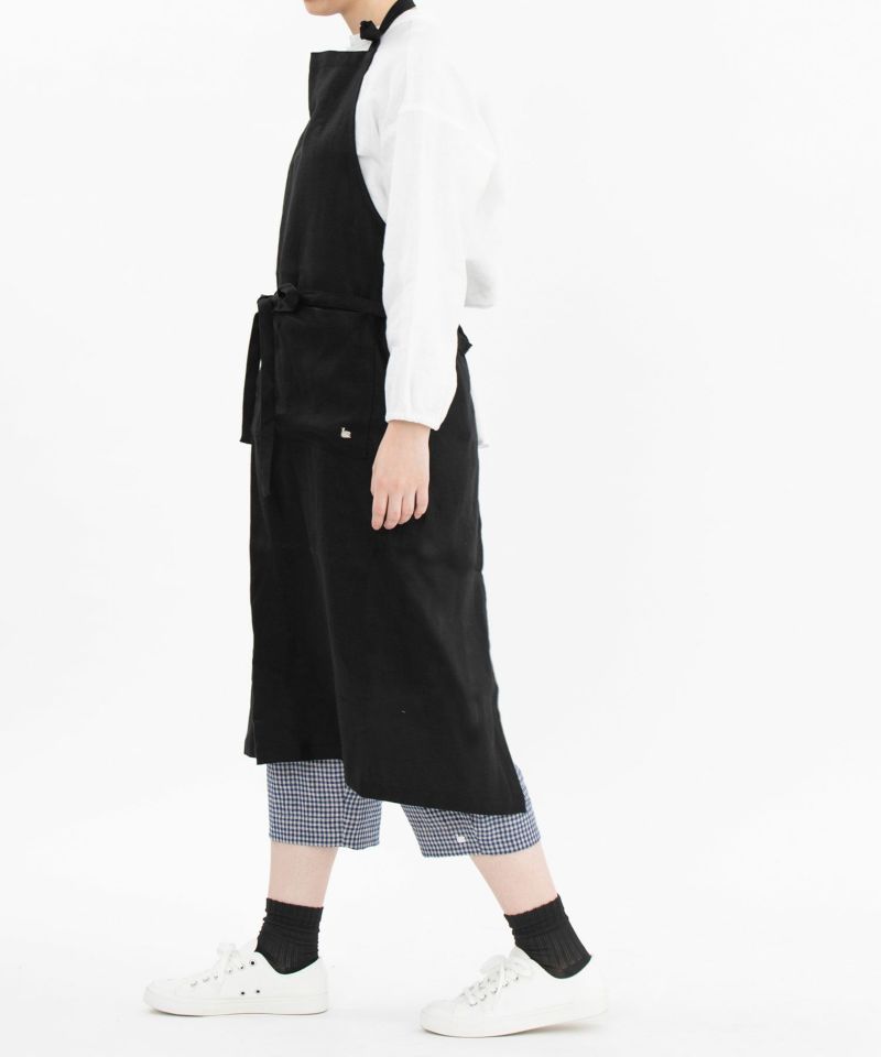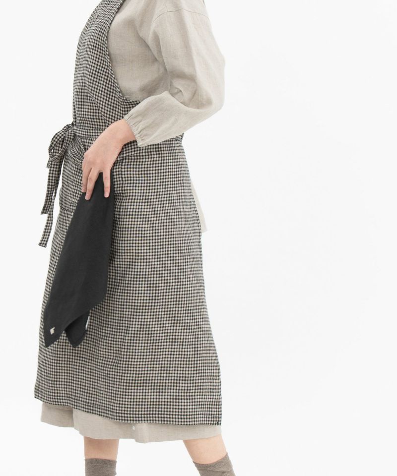 天然素材の中でもっとも丈夫と言われるリネンで仕立てたエプロン。吸水性がよく、水に濡れても乾きが早いため清潔にお使いいただけます。洗いざらしでもナチュラルな風合いがあり普段使いにぴったりです。ウエスト部分のヒモは前後どちらでも結べます。後ろでゆったり結んでも、前でキュッと結べば動く家事にも便利です。首かけタイプのヒモなので肩ヒモがずれてしまう煩わしさもありません。長さも調節していただけます。タオルなど作業に必要なアイテムをさっとしまいやすい大きめのポケットもポイント。キッチンはもちろん、お掃除やガーデニングなど様々なお家しごとにぴったりです。ひざ下まで覆ってくれる長めの丈なので、お洋服をしっかり汚れから守ってくれます。使うほどに愛着の沸くアイテムです。nop de nodのアイコンであるスワンをさりげなく刺繍してあります。プレゼントにもおすすめです。