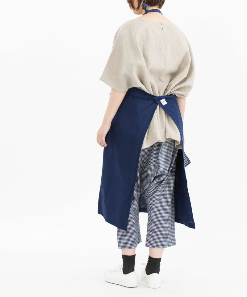 程よい厚みのある、麻らしい素朴な生地の風合いを感じられる9番手リネンを使用しています。ナチュラルな風合いを生かしたアイテムでオールシーズンお使い頂ける生地感が特徴です。