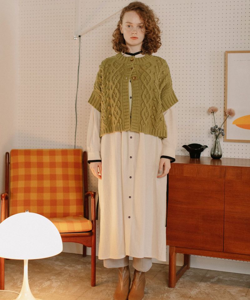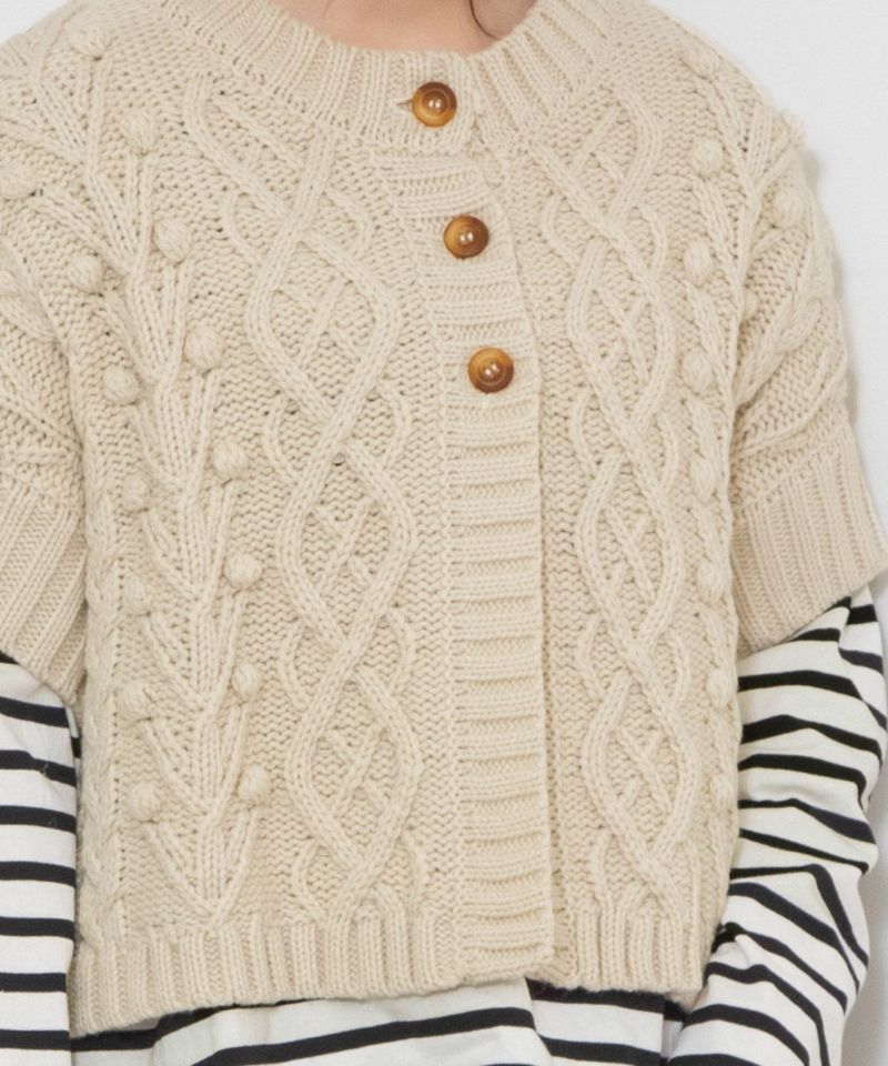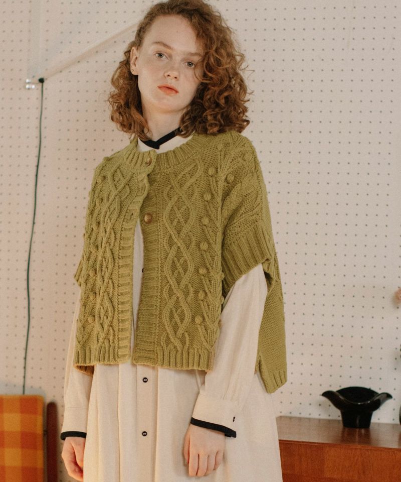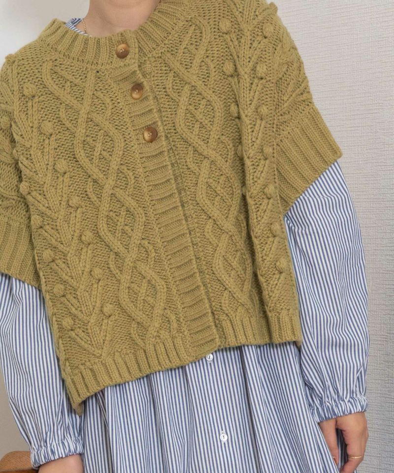 ・ハンドニットのような立体感のあるふっくらした編地に仕上がりました。ウール混の暖かなタッチでニット特有のチクチク感が少ないのも嬉しいポイント。