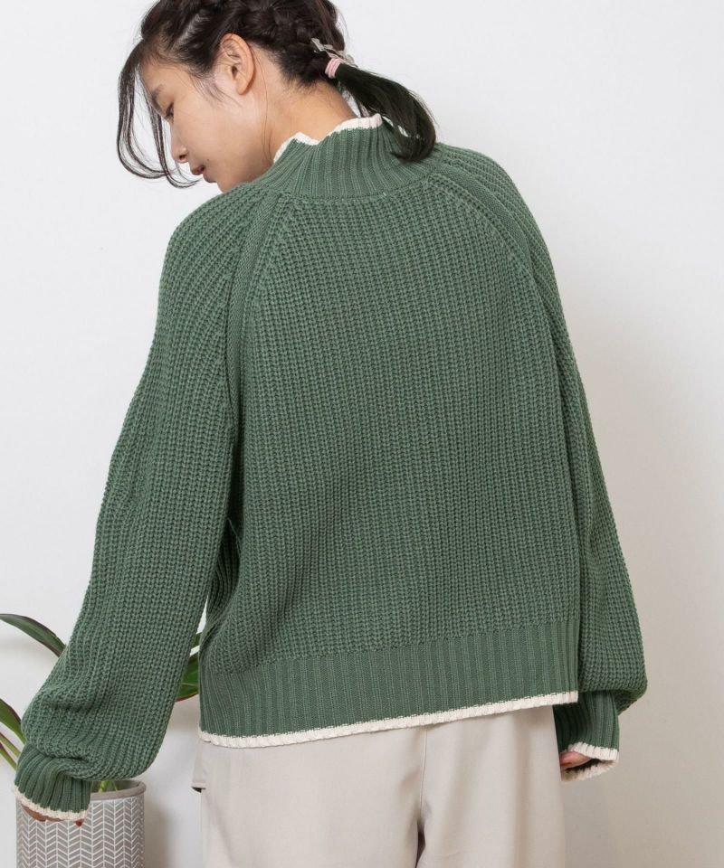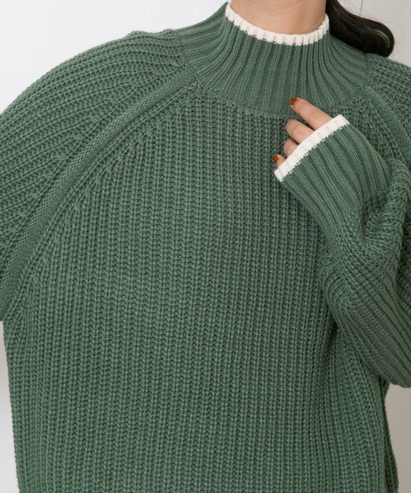 ざっくりと編み立てた人気のあぜ編みニットプルオーバー。ラグランスリーブのゆるいシルエットがかわいい、着回しやすいシンプルな1枚。襟や袖口の配色デザインがポイントです。スタイルが決まりやすく、どんなボトムにも合わせやすいニットアイテムです。