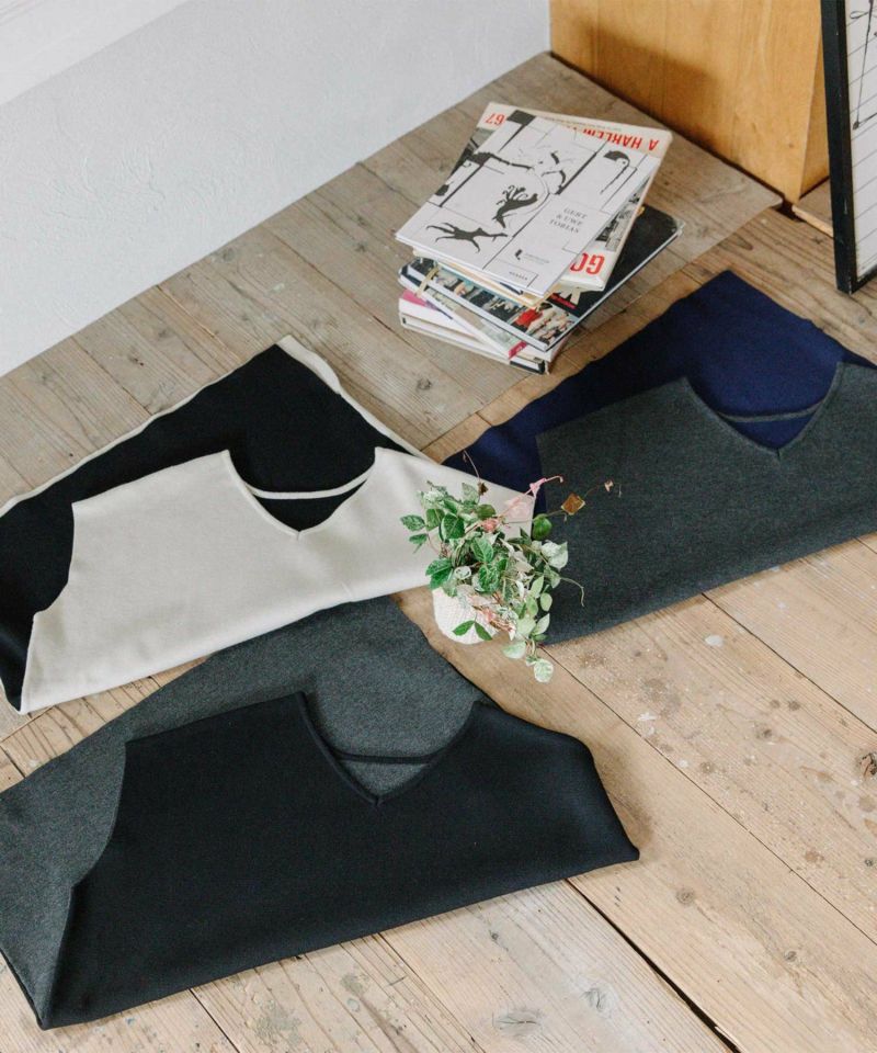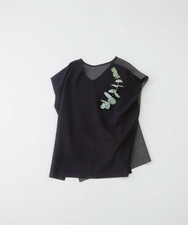 ・ゆったりワイドな身幅に長めチュニック丈のベスト。前後で切り替えたバイカラーで、前後両面着用可能な2wayデザインです。