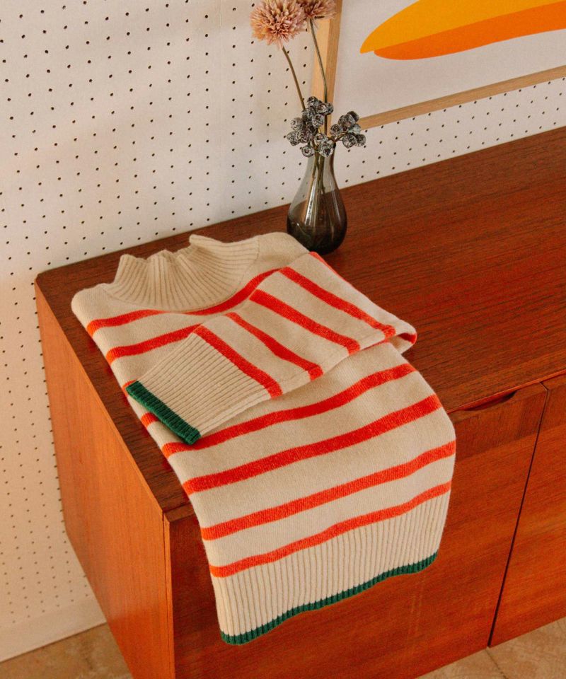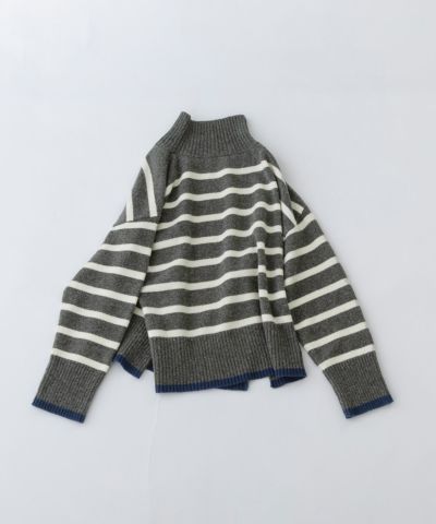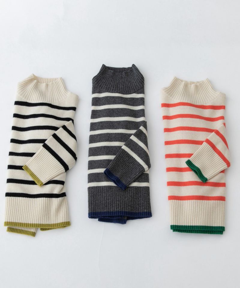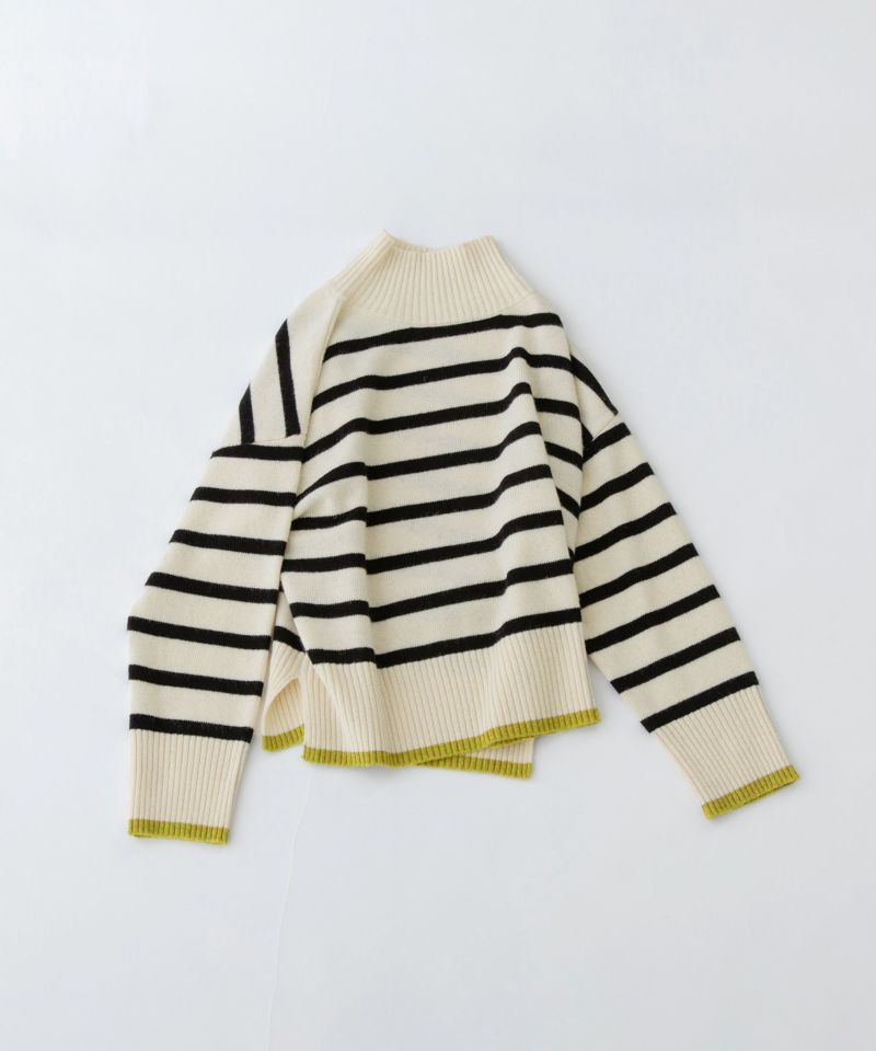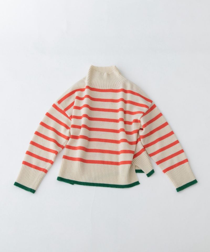 ・ゆったり身幅の長すぎないジャスト丈ですっきりと決まり、長めのリブにはアクセントカラーをいれました。