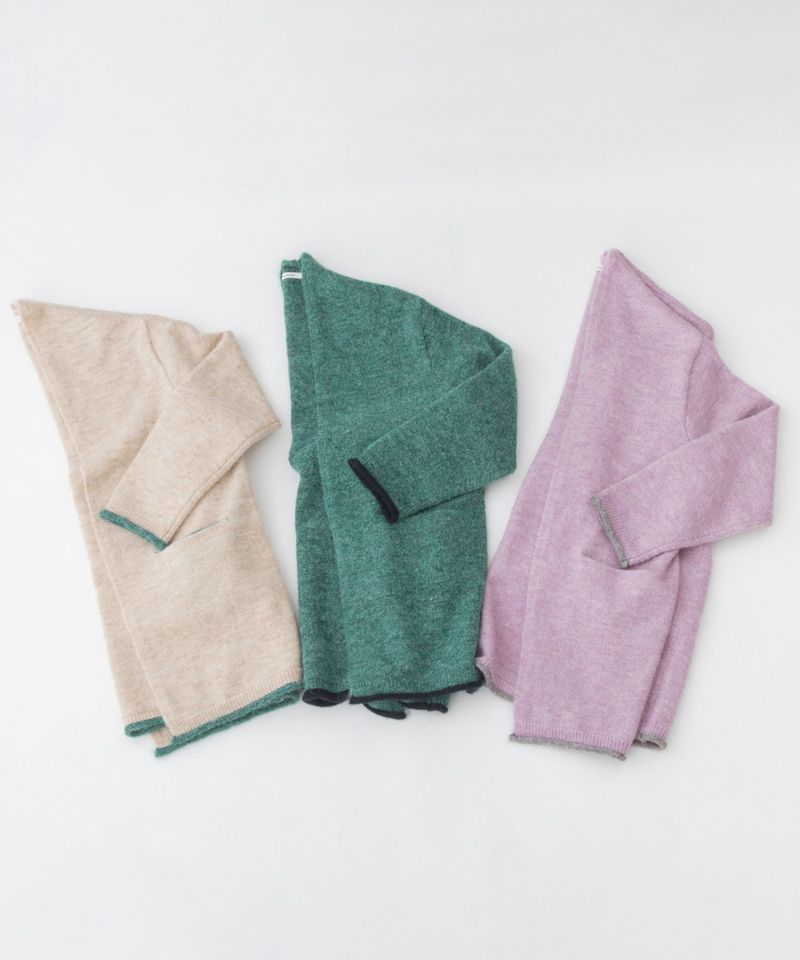 ・ふんわりとした肌触りの良いウォーム感のあるニットで編み立てたノーボタンのカーディガン。