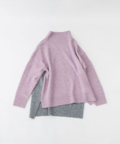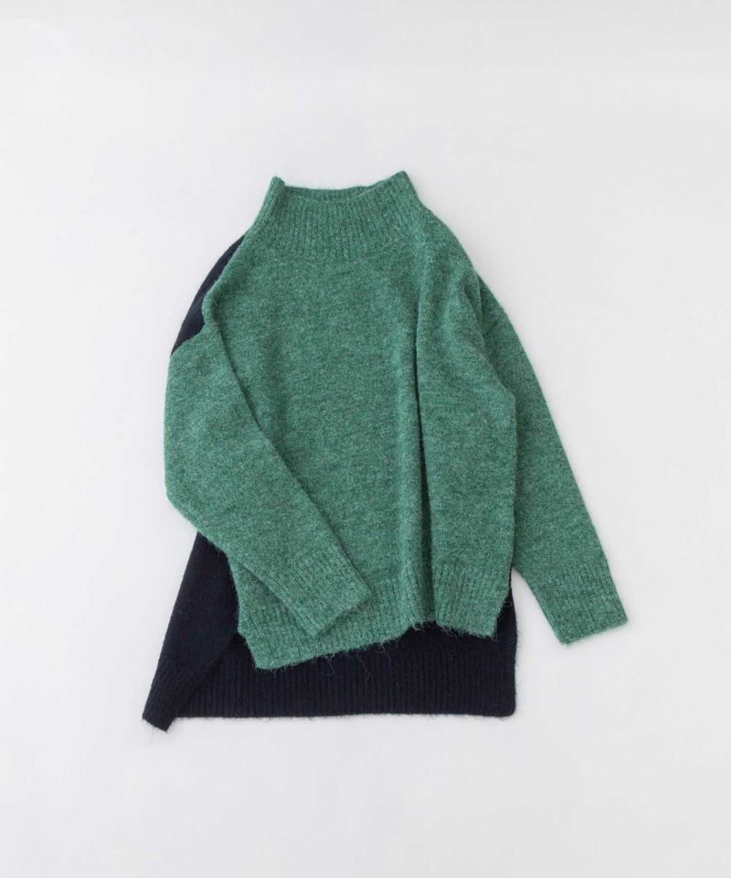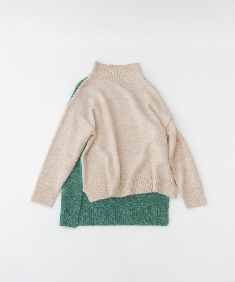 ・一枚で暖かいハイネックで、肩を落としたドロップショルダー。身幅もたっぷりとオーバーサイズ・ビッグシルエットで前後差のついた長い後ろ下がりシルエットです。