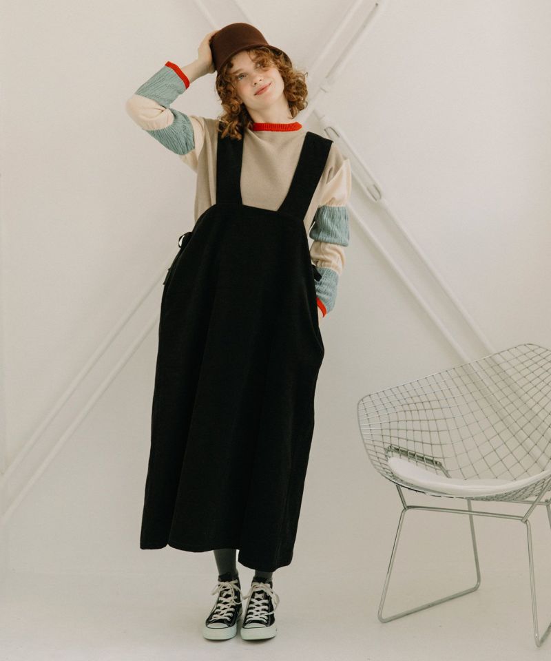 ・バストを低めに設定し、太めの肩ヒモと高い位置から広がるフレアシルエットがトレンドライクな1枚。