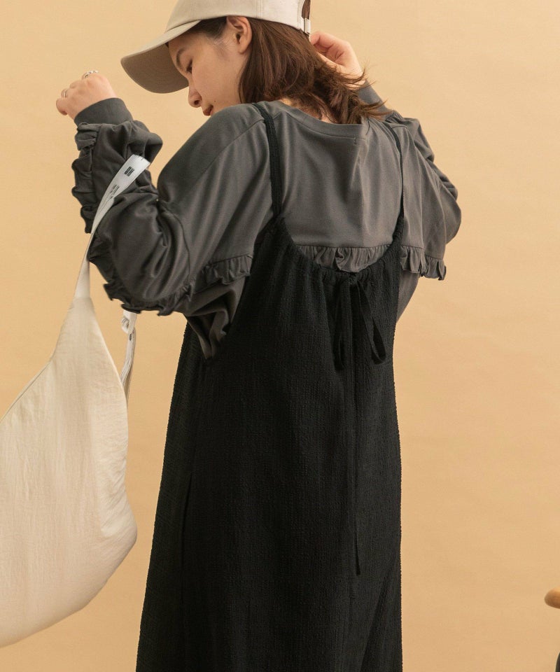 ・ぽこぽことした表面感が楽しいチェック素材のワンピース。インナー次第で長く着回せるジャンスカデザインで、少し伸縮性がある生地なのでアクティブに着られます。軽い素材で体のラインを拾いすぎない程良いシルエット。