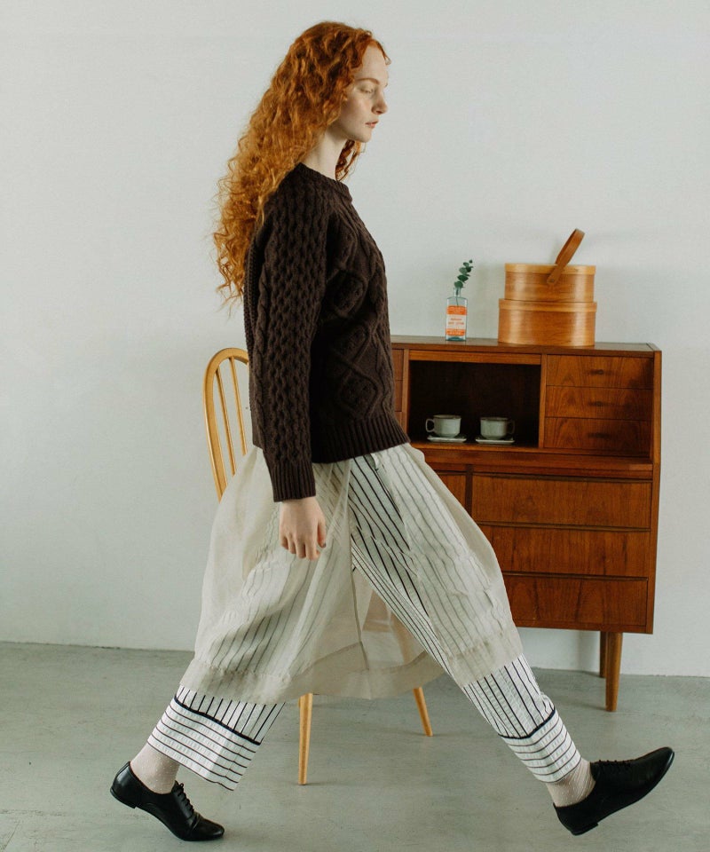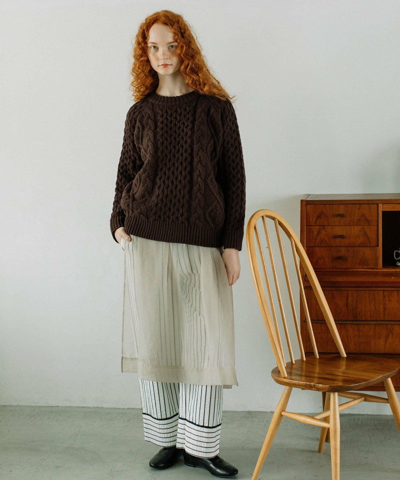 大胆なサイドスリットが大人っぽく、柄のパンツやデニムパンツとのレイヤードを合わせると旬な着こなしができ、レイヤードスタイルをお楽しみいただけます。