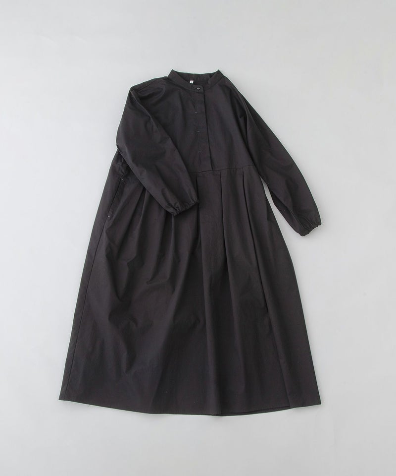 【WINTER SALE】コットンサテンスタンドカラー切り替えタックワンピース