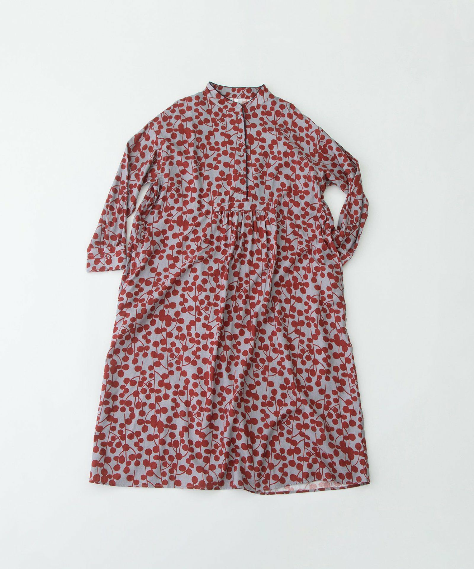 ビエラユーカリプリントスタンドカラーワンピース