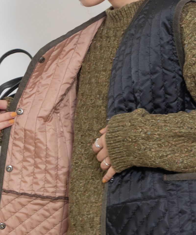 ・いつものコーディネートに取り入れるだけでワンランク上のレイヤードスタイルが完成するキルティングベスト。