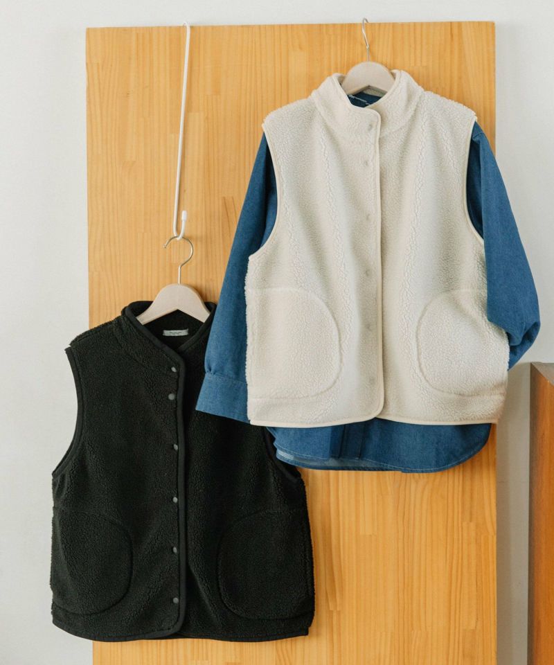 ・もこもことした触り心地がアルパカの毛皮のように柔らかく、ふわふわもこもこの秋冬ムードを高めるボアベスト。