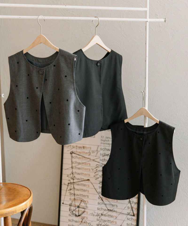 ・今らしいスタイリングが楽しめるショート丈のボレロベスト。
