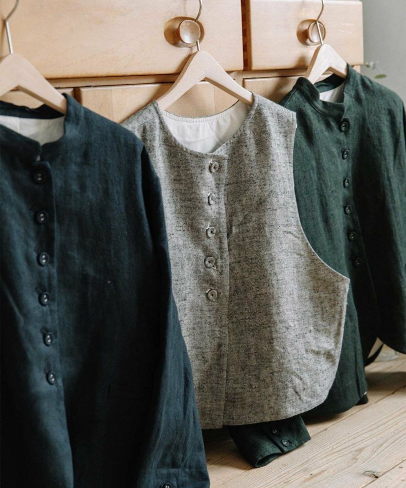・温かみがありツイード見えする麻100%のリネンビエラ起毛シリーズ。ゆったりとした雰囲気ながらきちんと見える、前後両面着用可能な2wayデザインです。