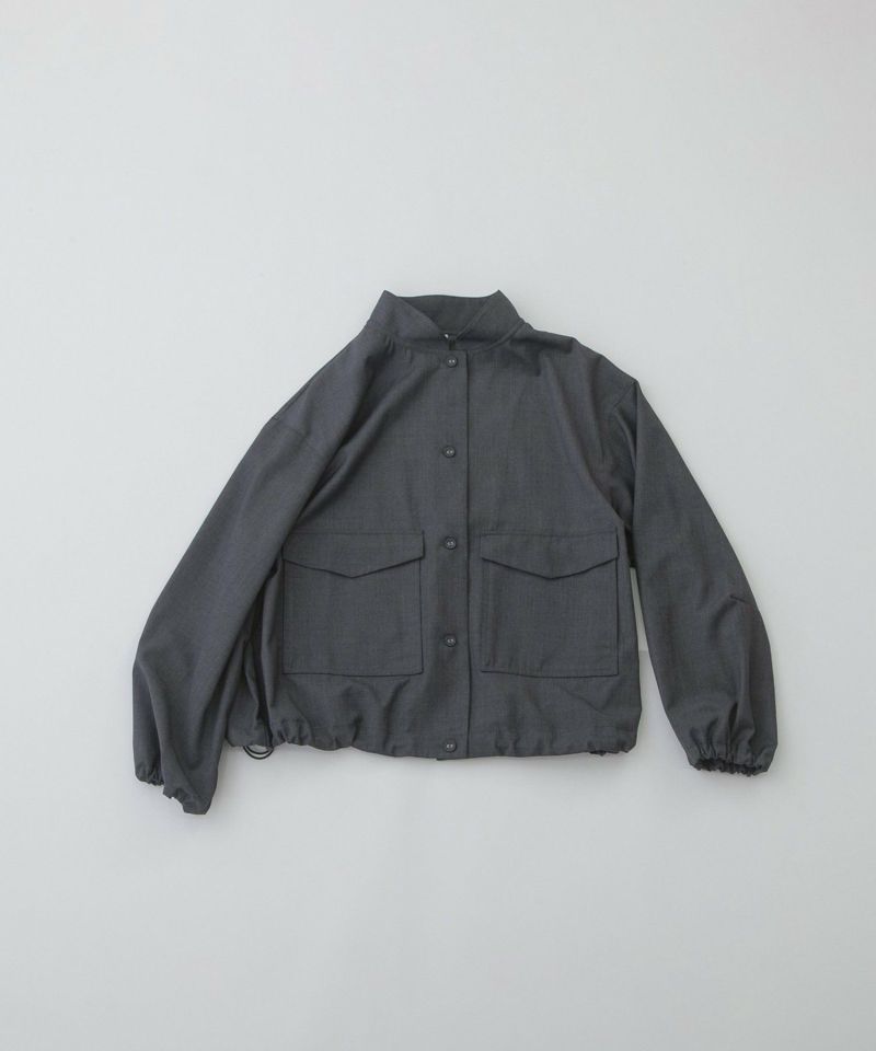 大きなポケットデザインのショートブルゾン。一重仕立てでラフに羽織れて、きちんと感も出るアイテムです。秋や春の端境の季節のきちんとしたい時期に重宝するフォーマル生地の「トロピカル」で仕立てました。ポリエステルレーヨンで、しわになりにくくイージーケアがうれしいシリーズです。今季はモード感のあるアイテムを展開しています。共くるみボタンのやさしい雰囲気と、背中のスワン刺繍がさりげないアクセントです。