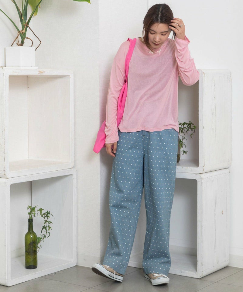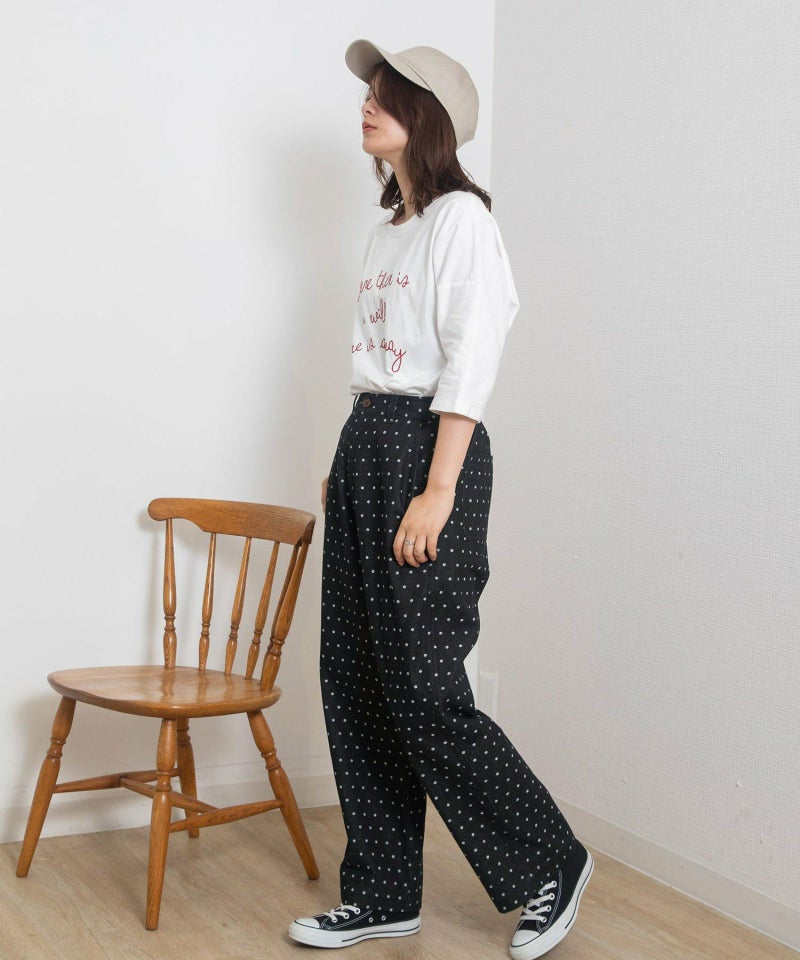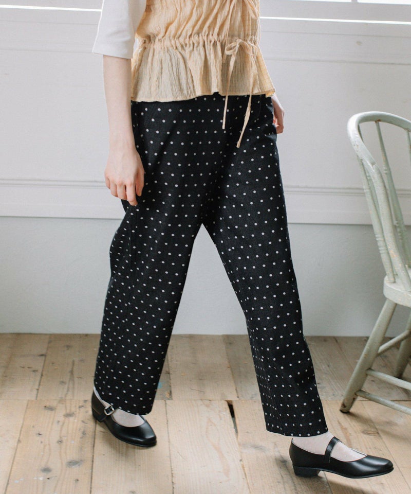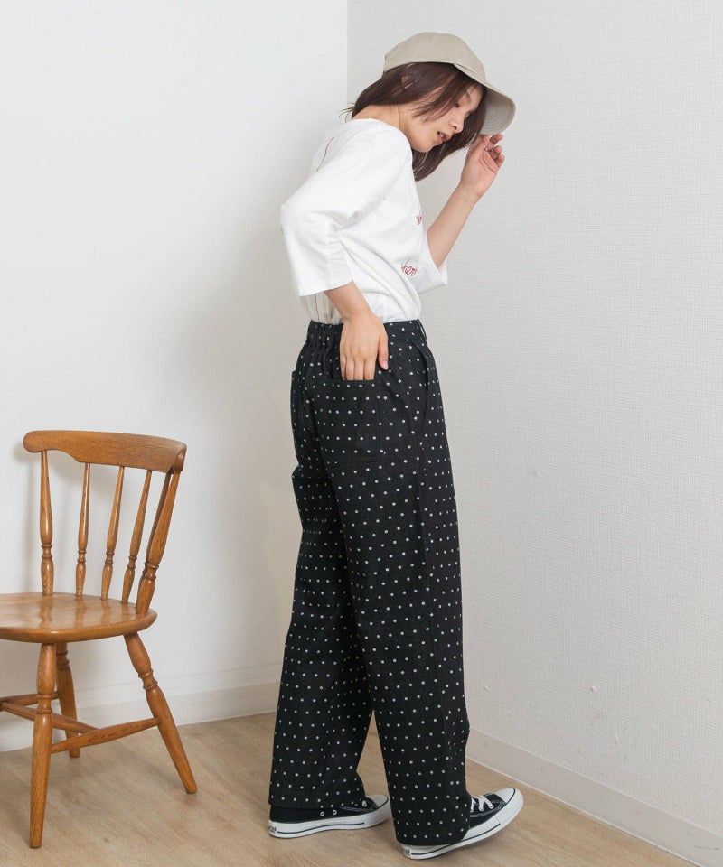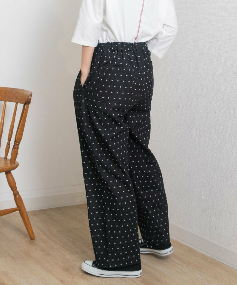 ・シンプルなトップス合わせも着映える、キャッチーな見た目でフェミニンさもあるドット柄のデニムパンツ。新鮮なデザインできれいめカジュアルな雰囲気を楽しめます。