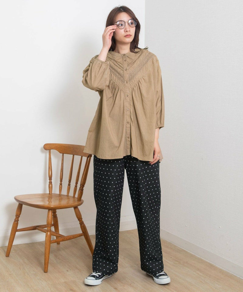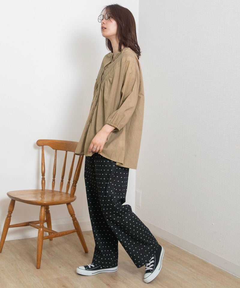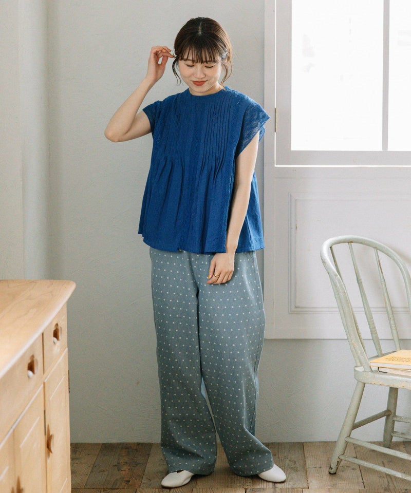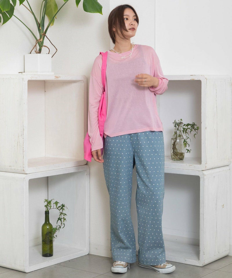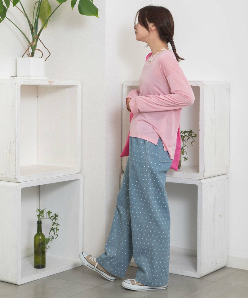 ・シンプルなトップス合わせも着映える、キャッチーな見た目でフェミニンさもあるドット柄のデニムパンツ。新鮮なデザインできれいめカジュアルな雰囲気を楽しめます。