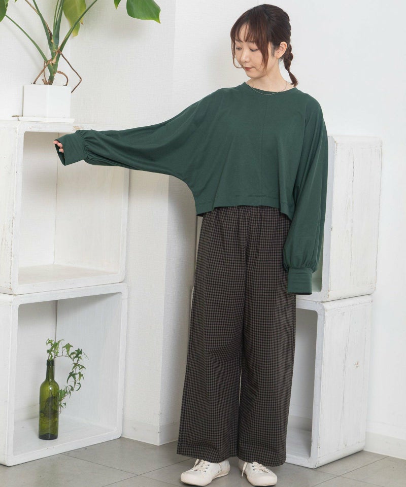 ・ウエストはぐるりゴム、サイズ感を調整できる紐を通しています。