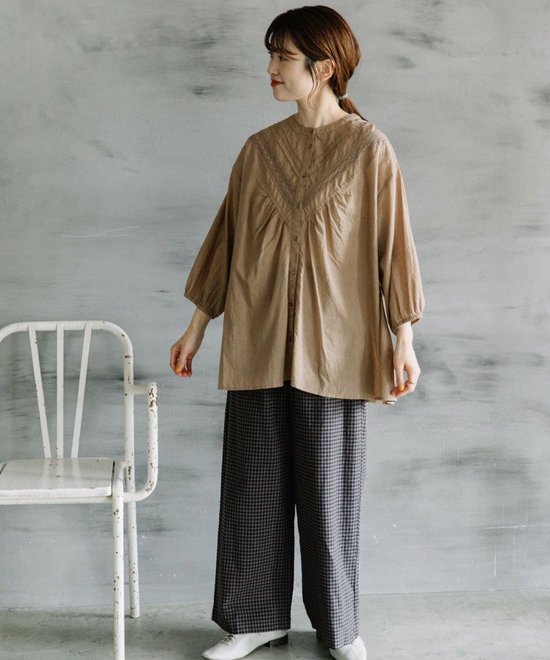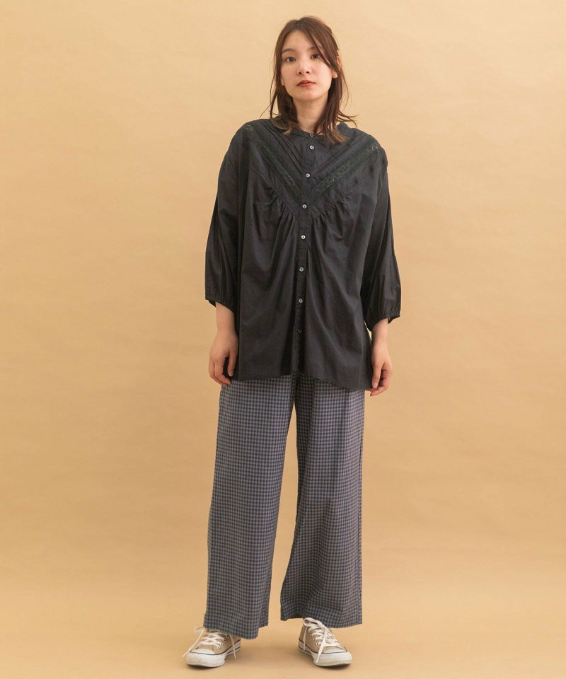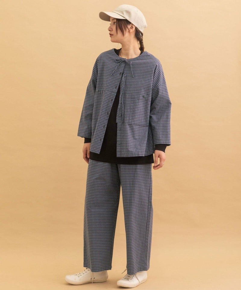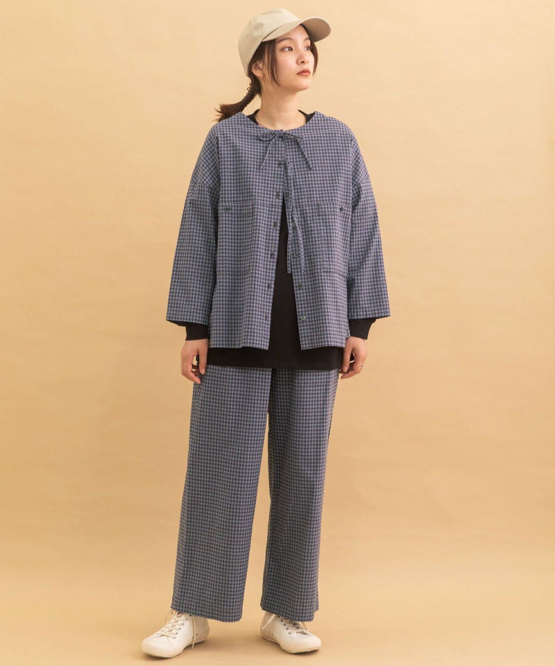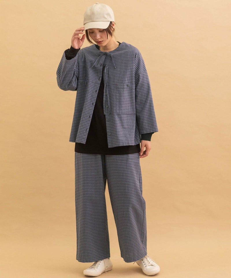 ・同素材の2451146888 カラーギンガムパッチポケットリボンシャツとのセットアップもお楽しみ頂けます。