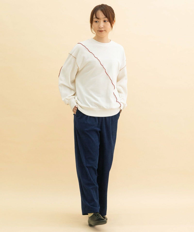 シーズンムードが高まるコーデュロイ素材。ニットはもちろん、スウェットとも相性が良いアイテムです。