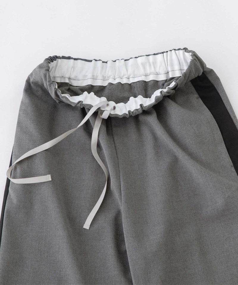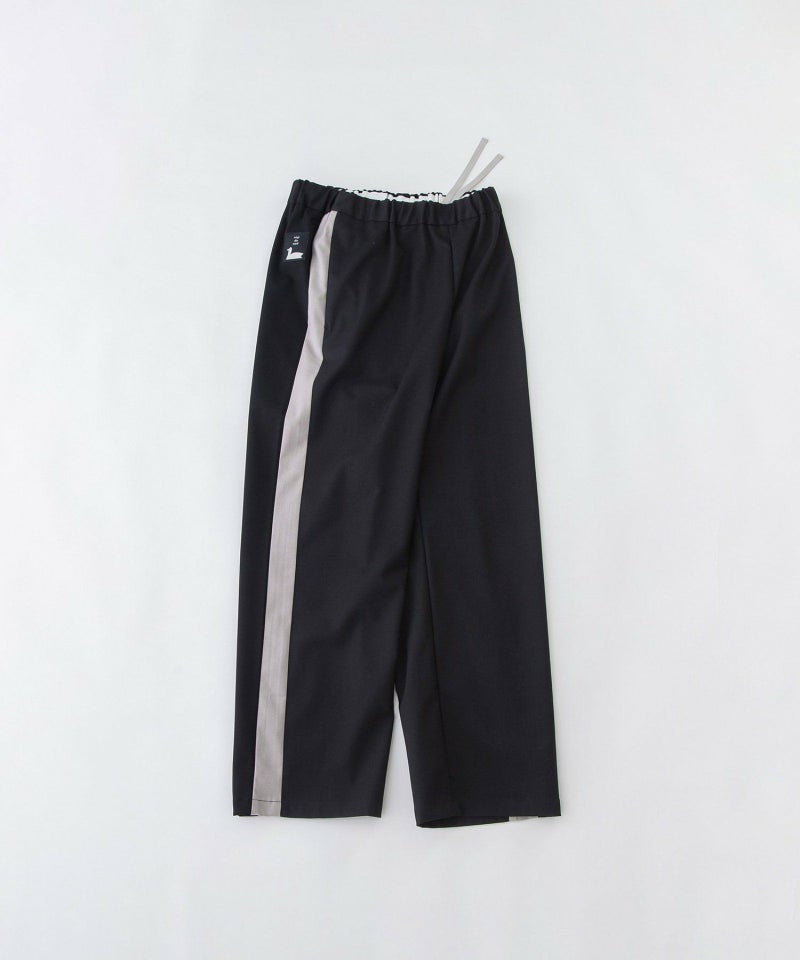 トレンドのトラックパンツをnop de nod風に取り入れたデザインパンツ。肉厚でしなやかな風合いに、裏側起毛でふんわりと暖かみを感じる生地で、すっきりストレートなイージーパンツです。右後ろにスワンネーム入り。ウエストはゴム仕様で内紐付き、両サイドポケットつき。