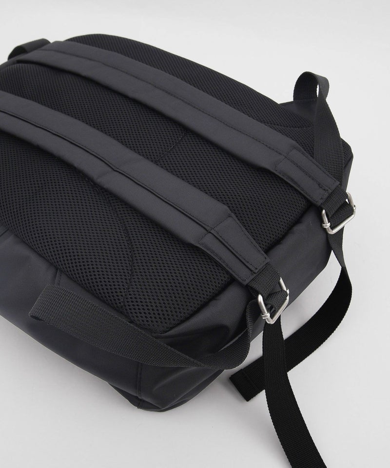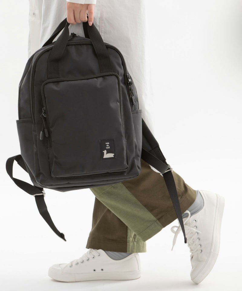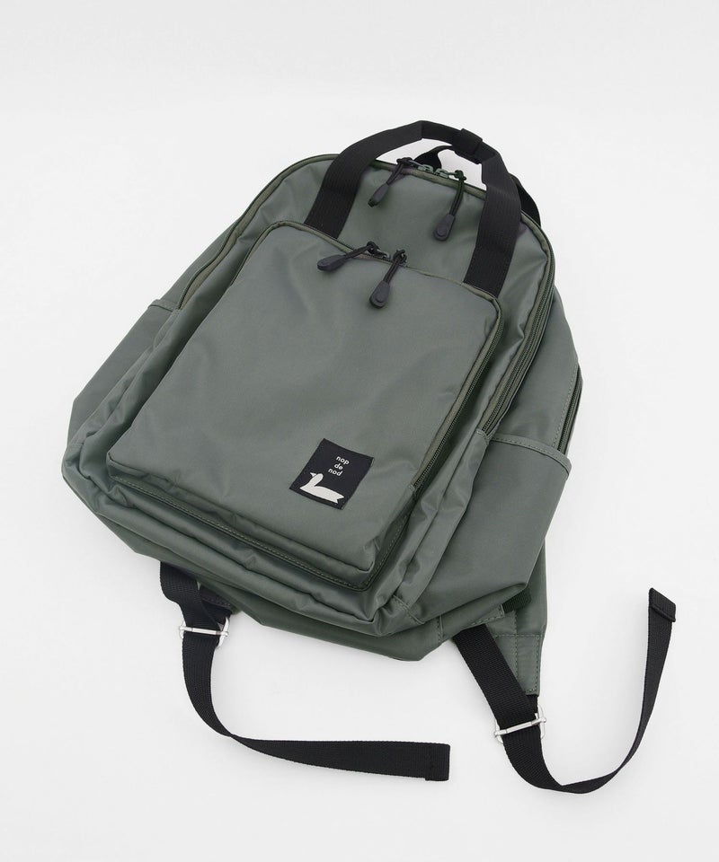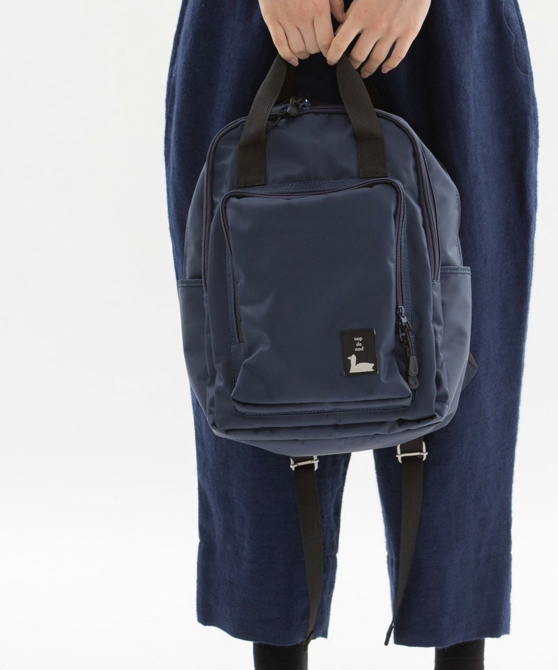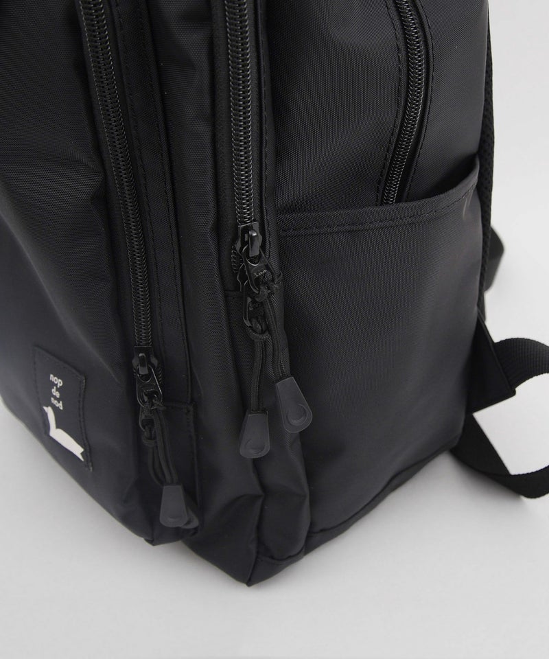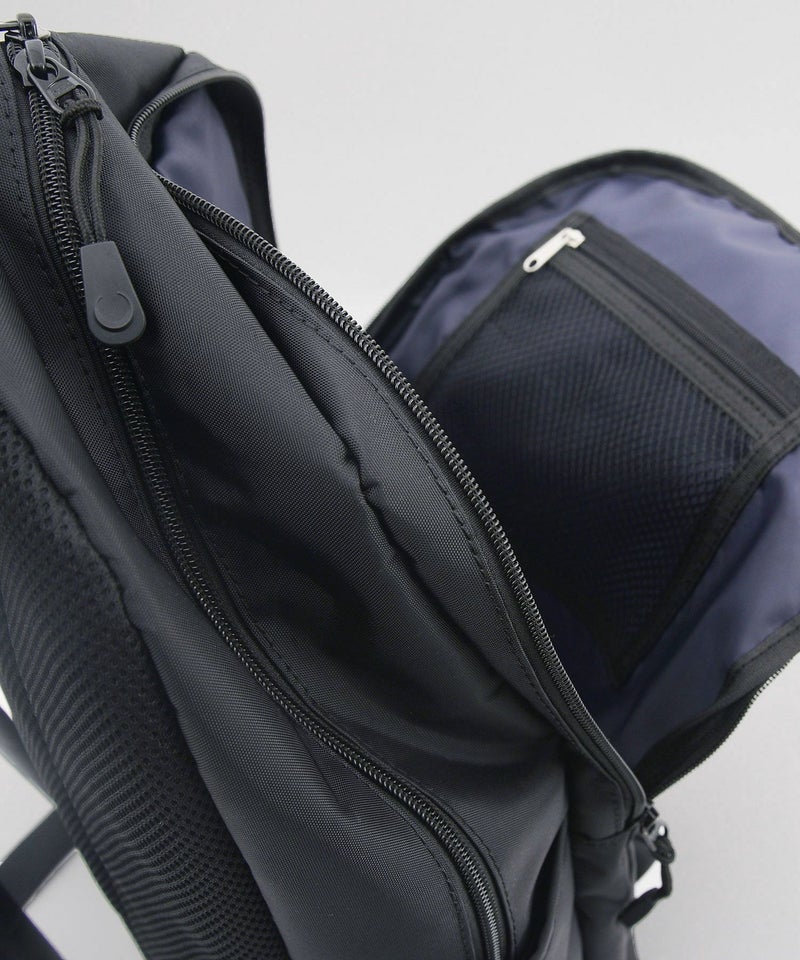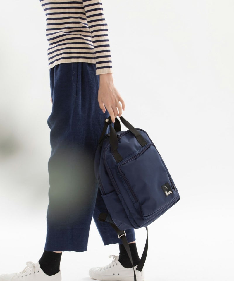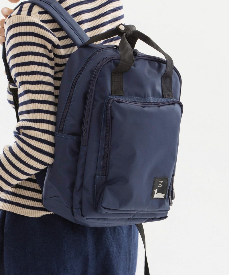 四角いポケットデザインがポイントのナイロンバッグシリーズ。普段使い出来る、程よい大きさのリュックサックです。背中に当たる部分はメッシュ素材で夏でも涼しくお使い頂けます。メイン収納はA4サイズ対応、ノートPCやタブレットもしっかりと入る容量で、内側に大きなポケットが2箇所あり貴重品を入れたりと便利です。外側のフロントの大きく開くポケットに加え、さらにメイン収納との間に大きく開く収納箇所があり、内側3箇所のポケットで機能が充実。両サイドにはさっと小物を入れるのに便利なポケットがあります。紐状の丈夫なファスナー引手も使い勝手に優れたリュック。デイリー使いにおすすめです。重量約950g