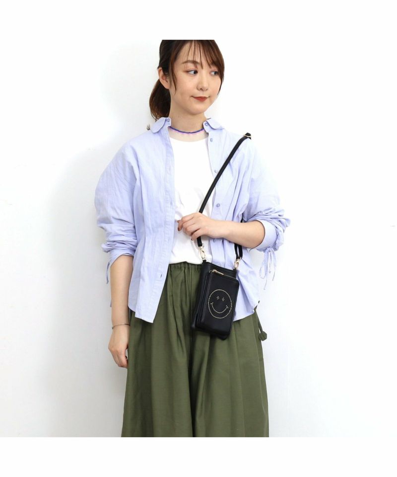 スタッズのSMILEYフェイスマークがポイントのスマホショルダーバッグです。