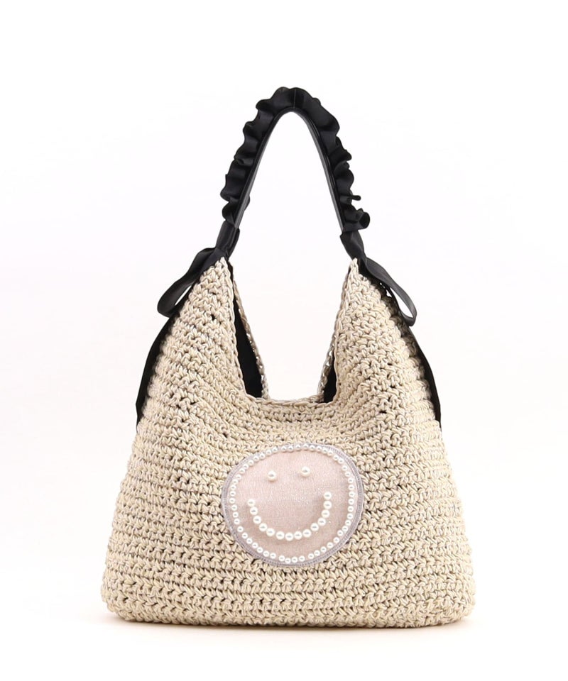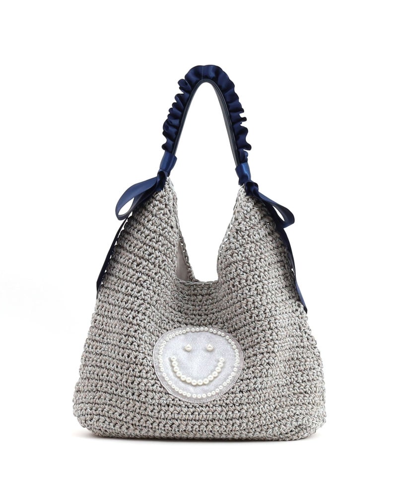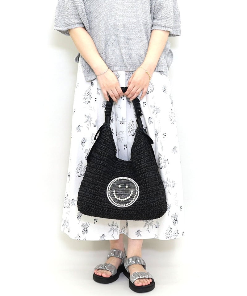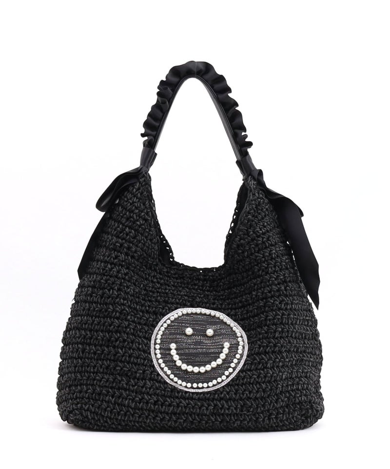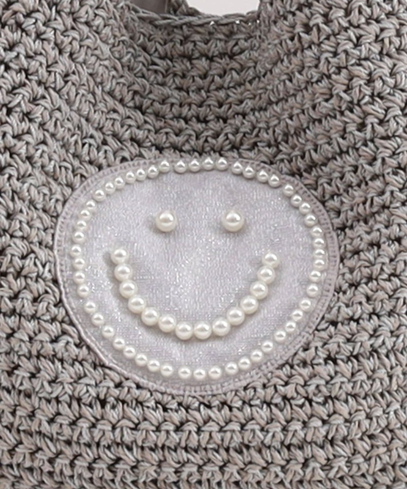 キラキラ光るパールとビジューでかたどられたSMILEYがスタイリングに映えます