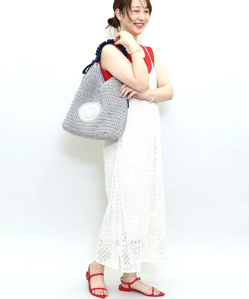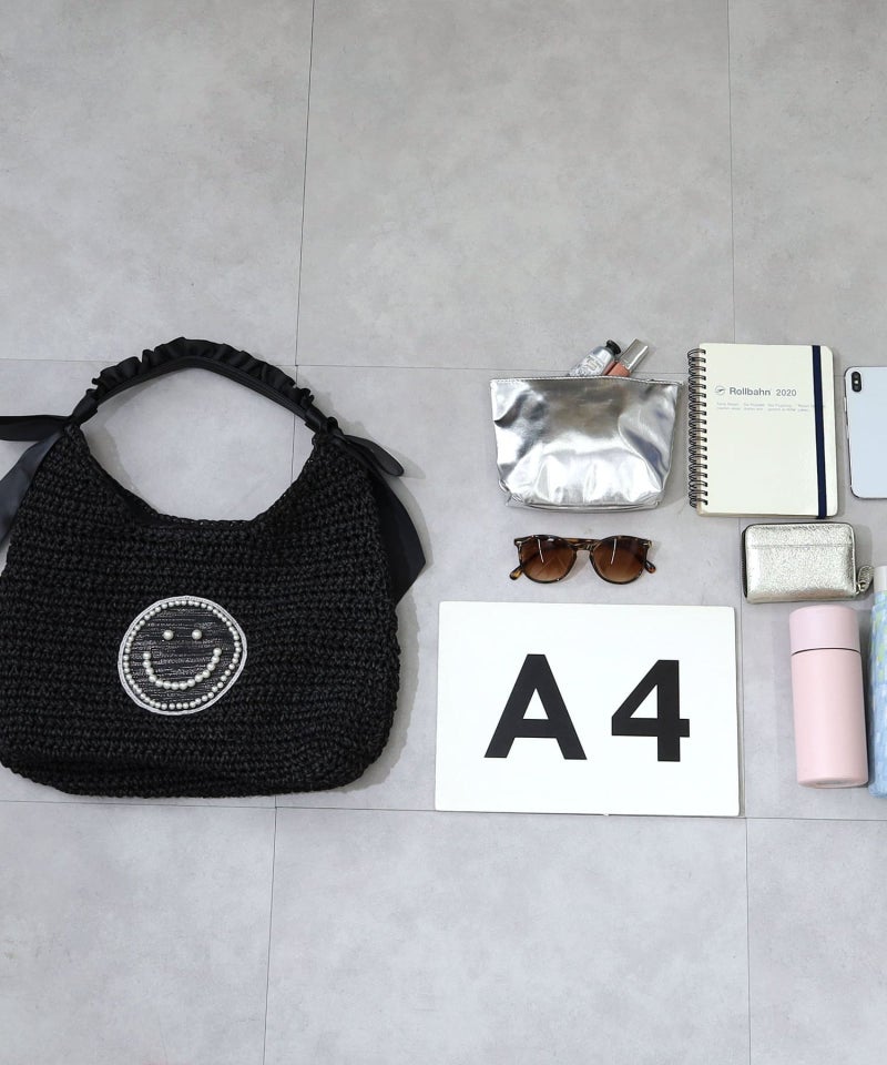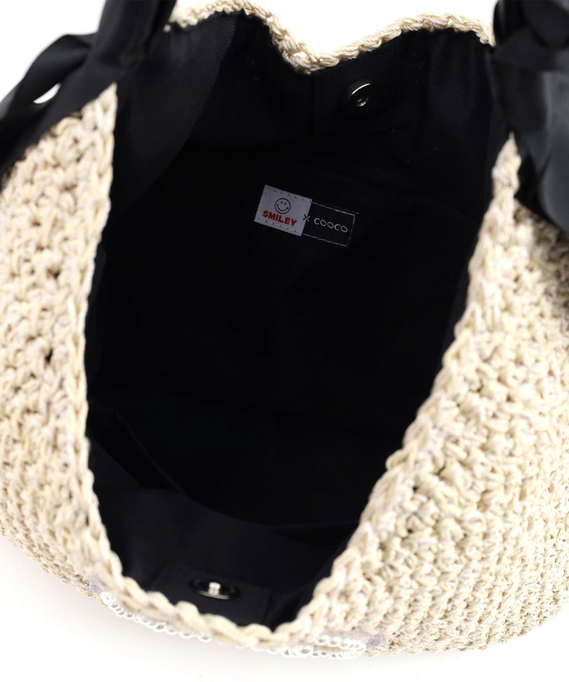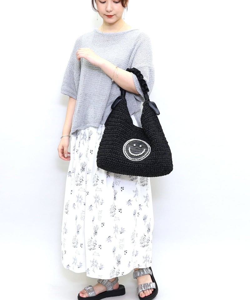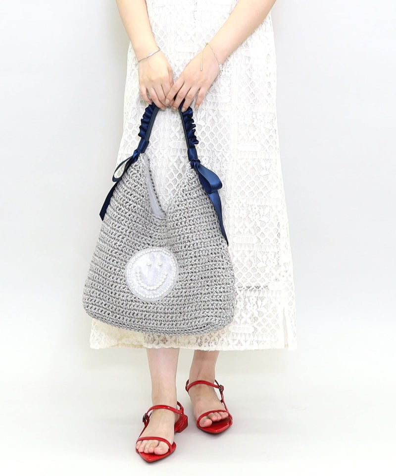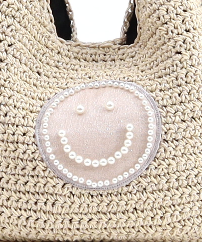 キラキラ光るパールとビジューでかたどられたSMILEYがスタイリングに映えます