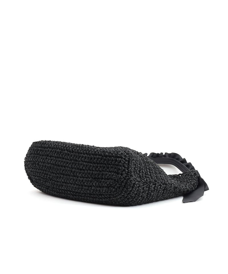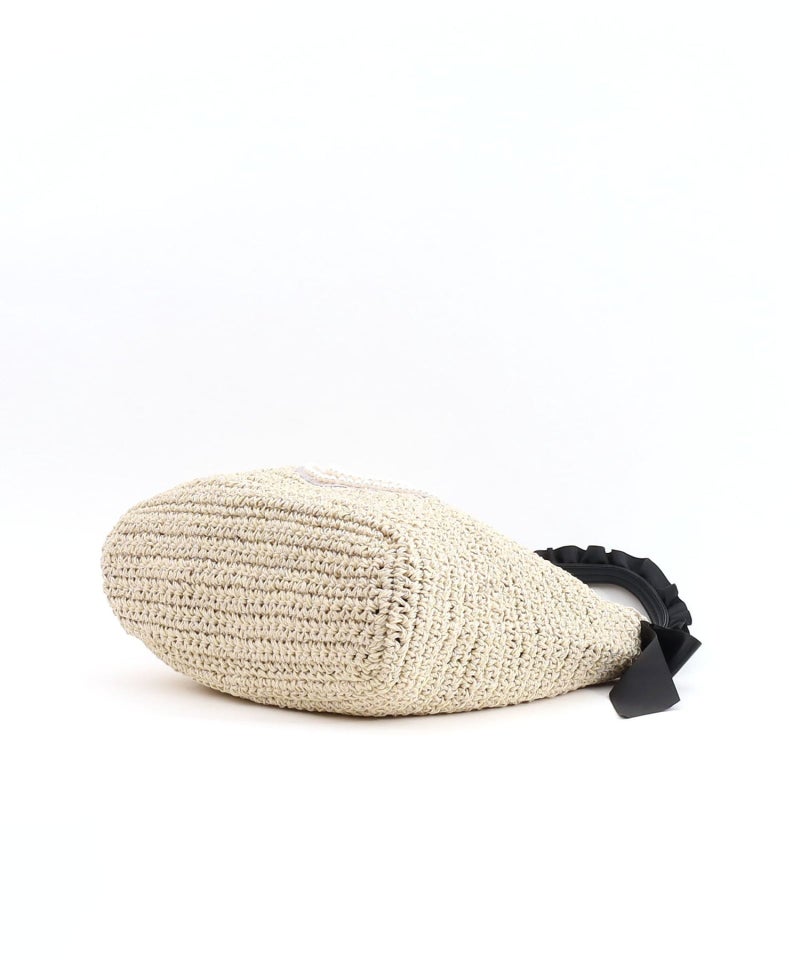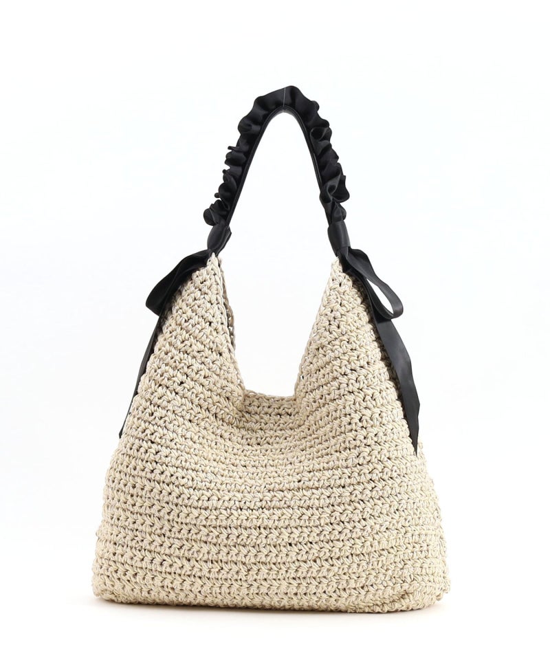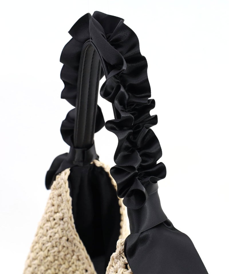 ハンドルは持ちやすい合皮の上に、フェミニンなフリルをあしらったサテンテープでフェミニンさをプラス