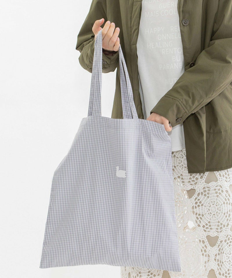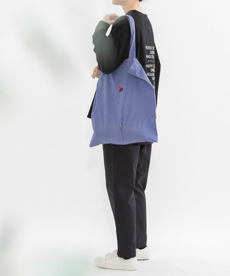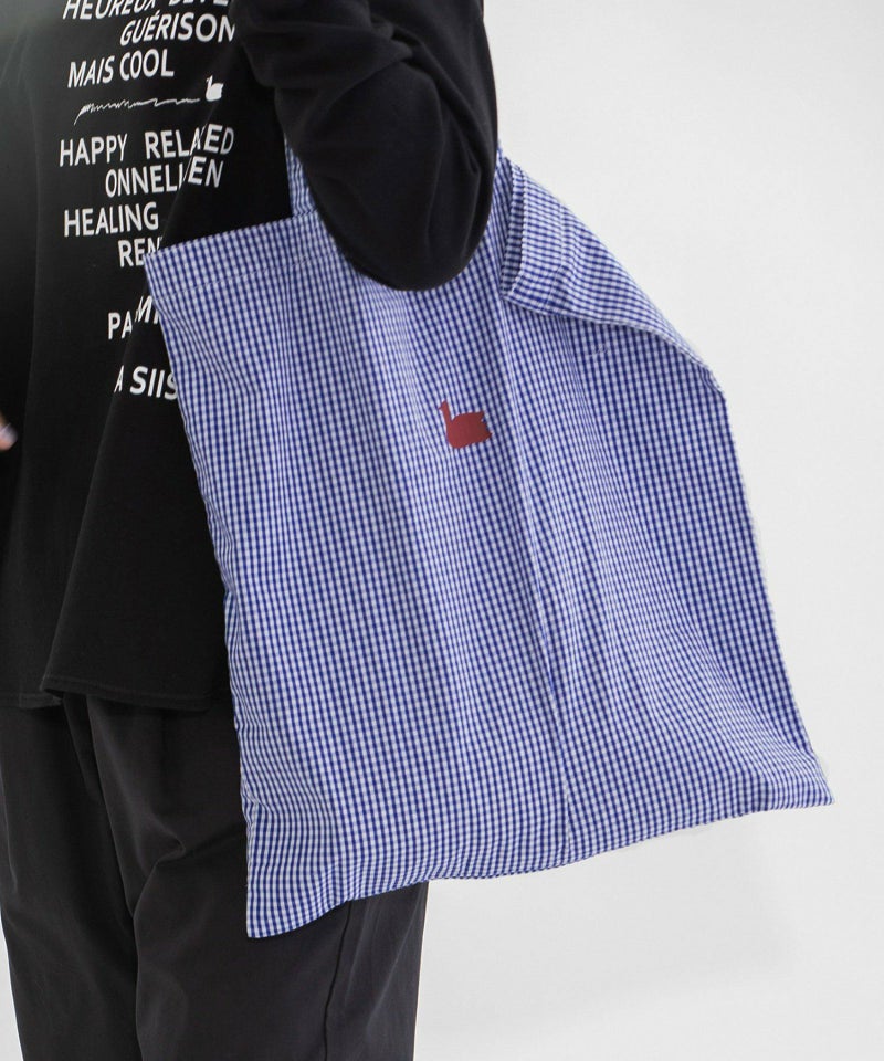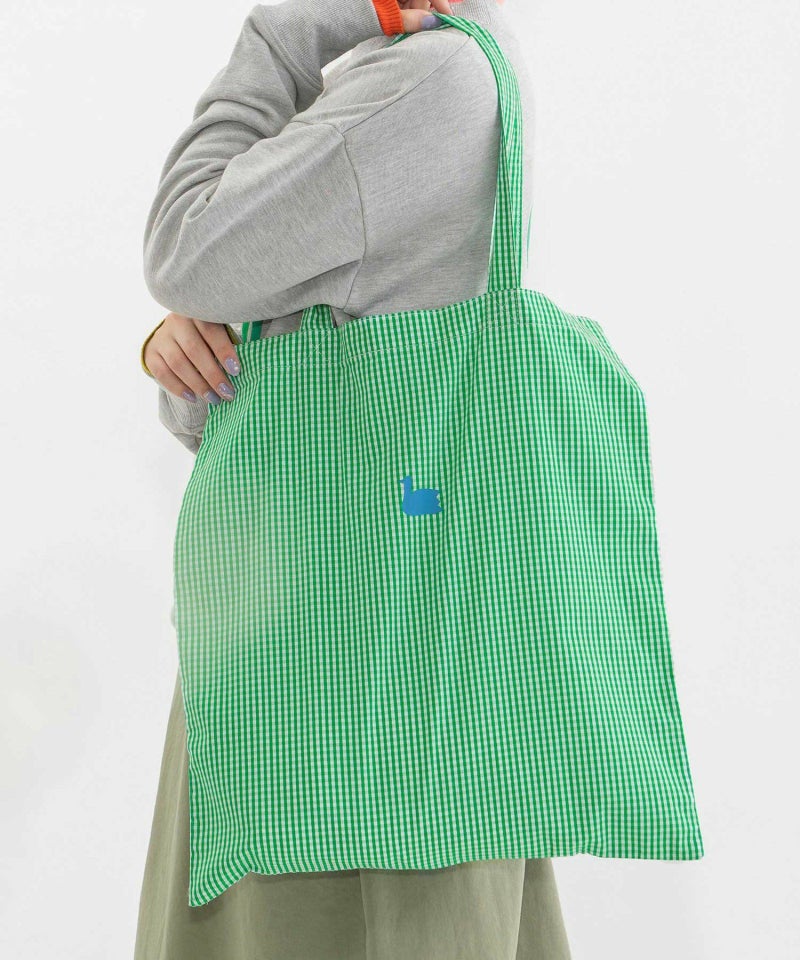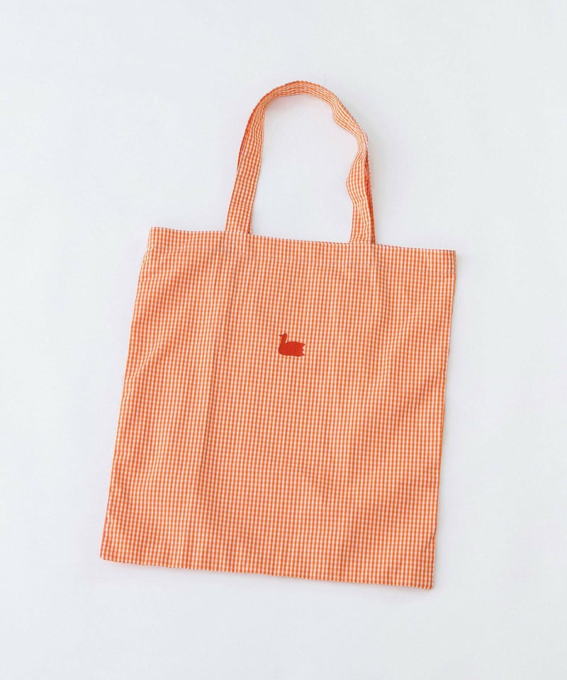 Laukkuシリーズのギンガムバージョンが登場。大きめサイズが使いやすいポケッタブルなエコバック。トレードマークの白鳥のプリント入り。内ポケット付き。