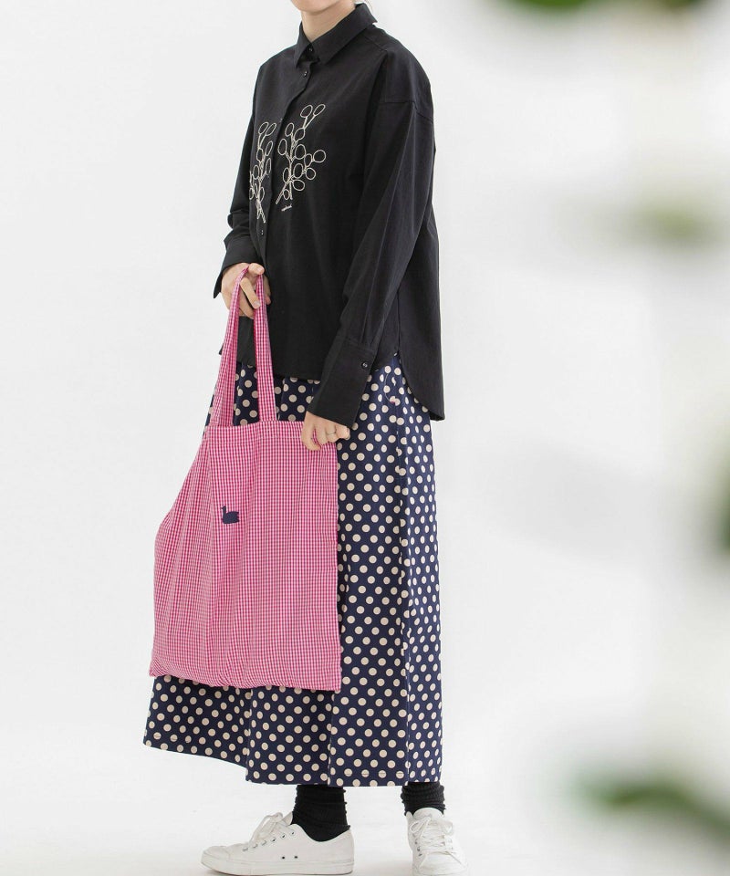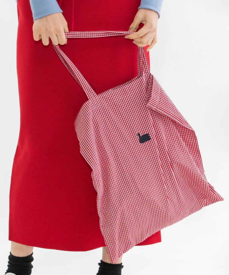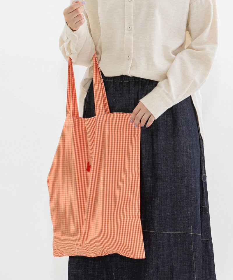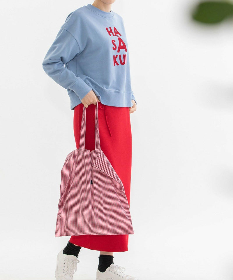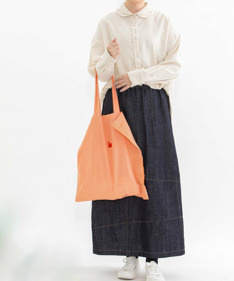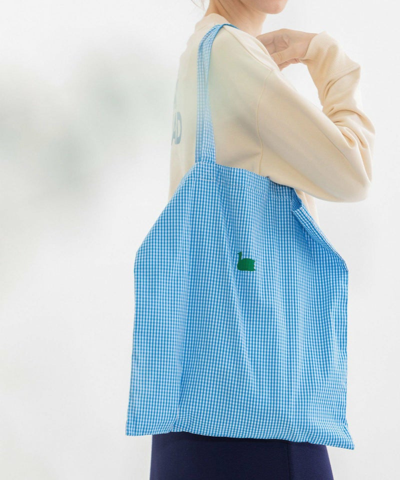 Laukkuシリーズのギンガムバージョンが登場。大きめサイズが使いやすいポケッタブルなエコバック。トレードマークの白鳥のプリント入り。内ポケット付き。