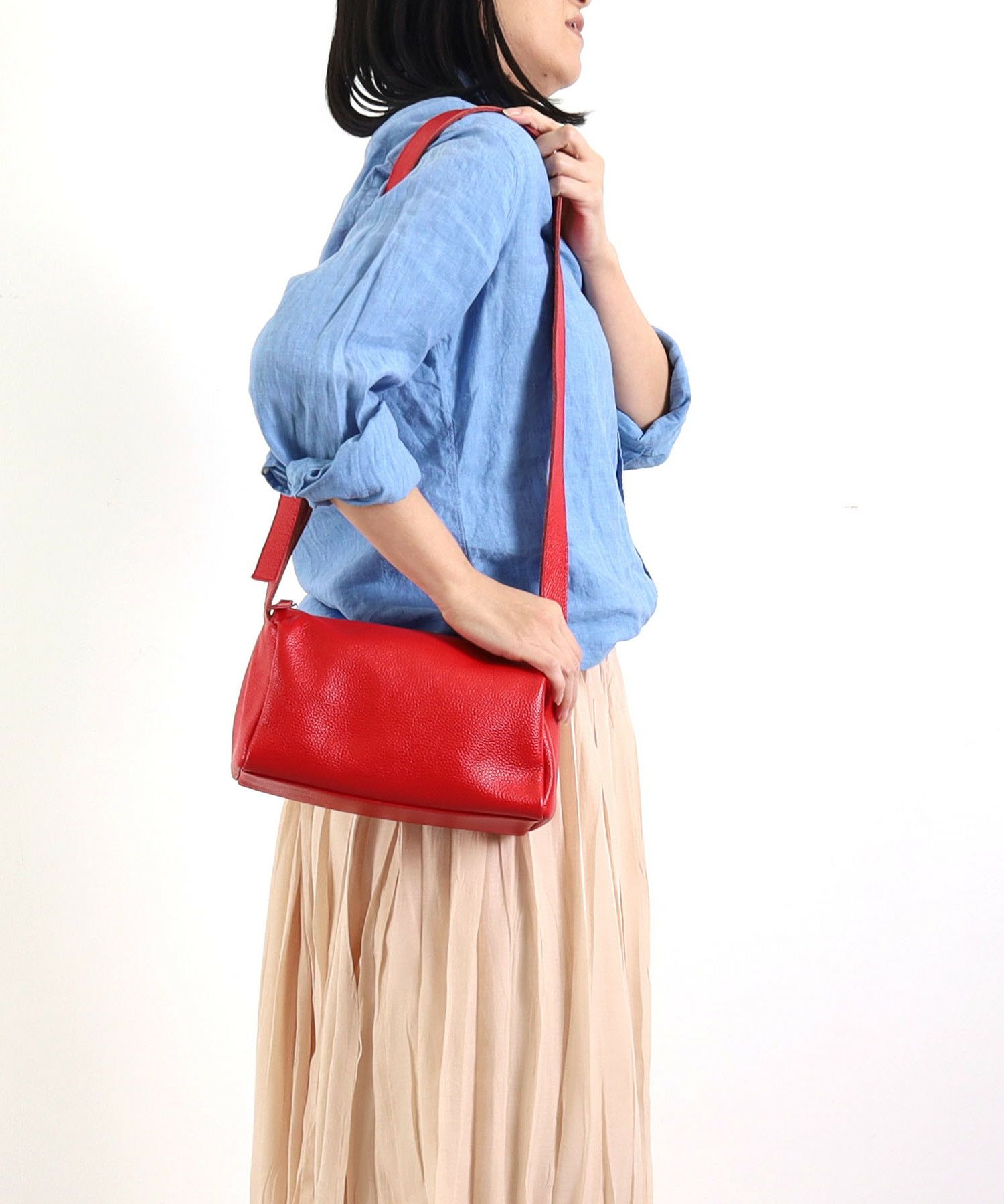 ショルダーの長さを少し短めで斜め掛けしていただくと今っぽいスタイリングになります。