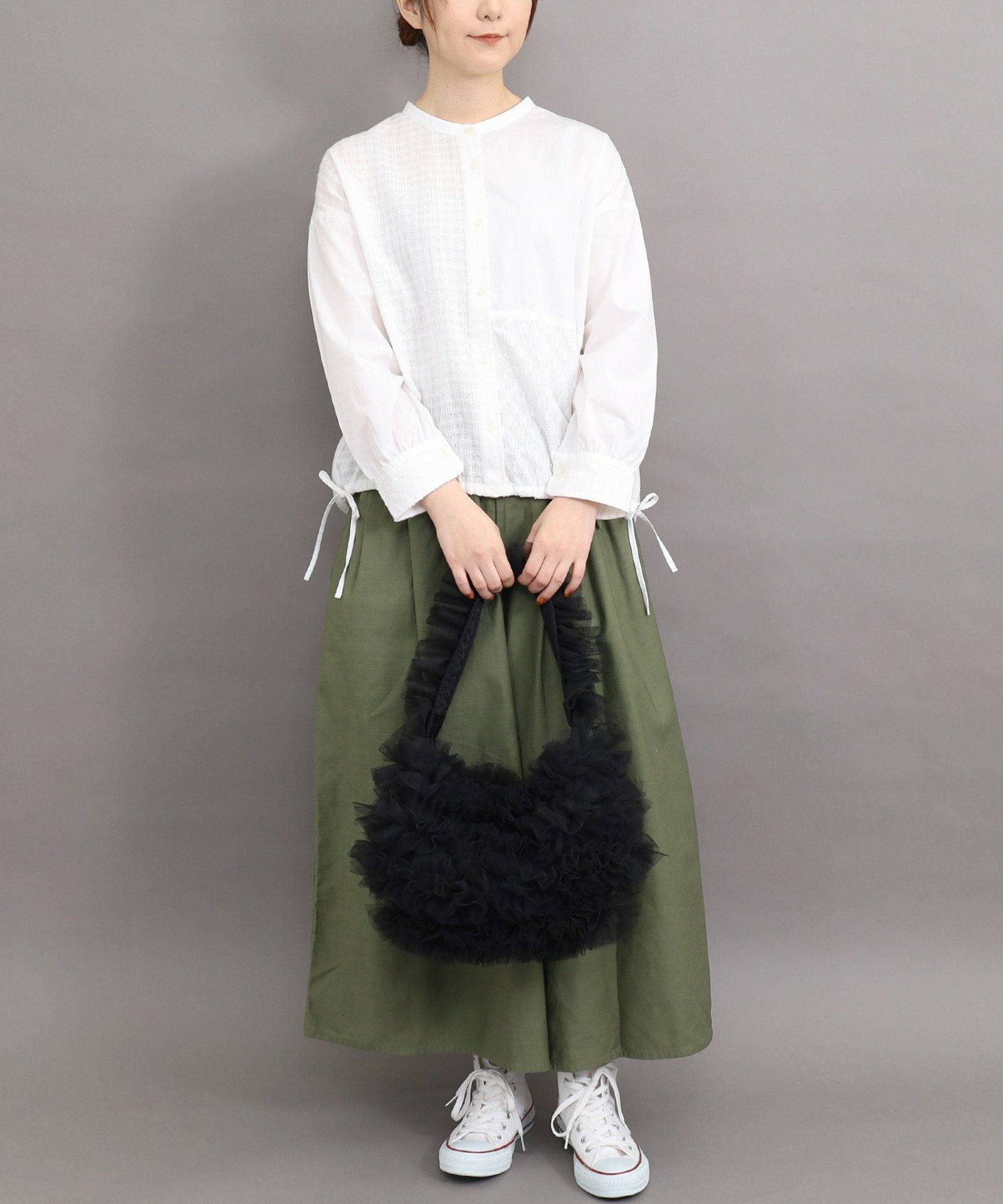 | 素材 | 表地 ポリエステル フリル部分 ナイロン 裏地 ポリエステル |