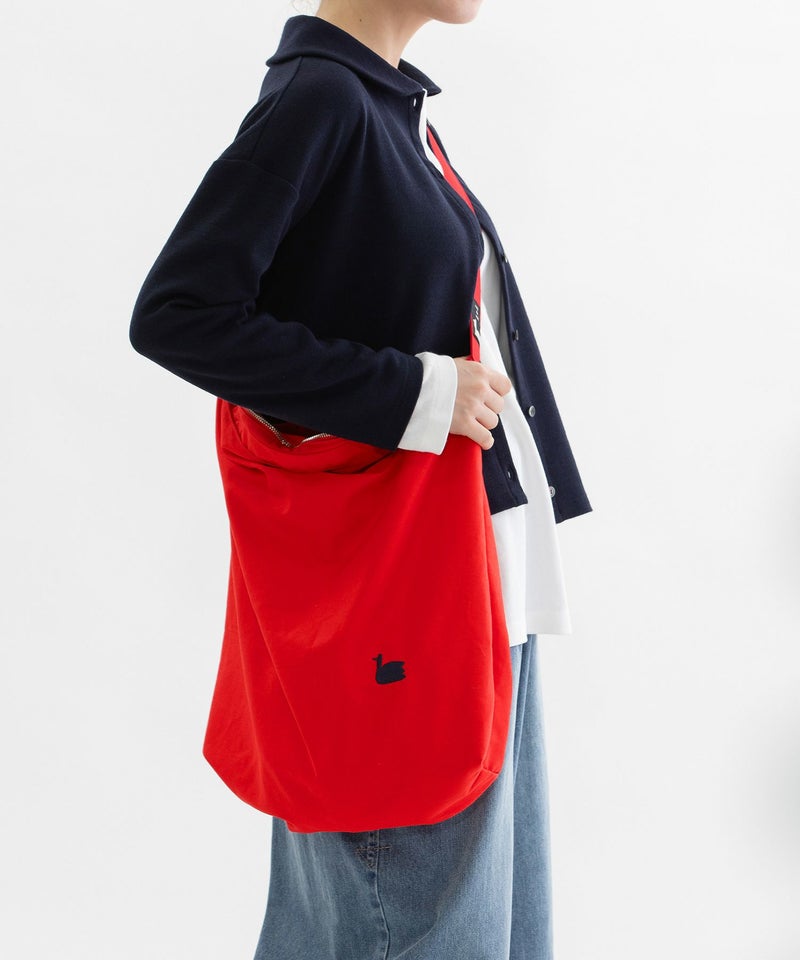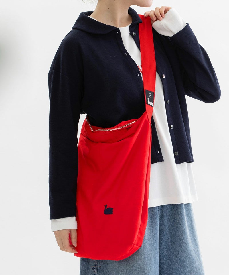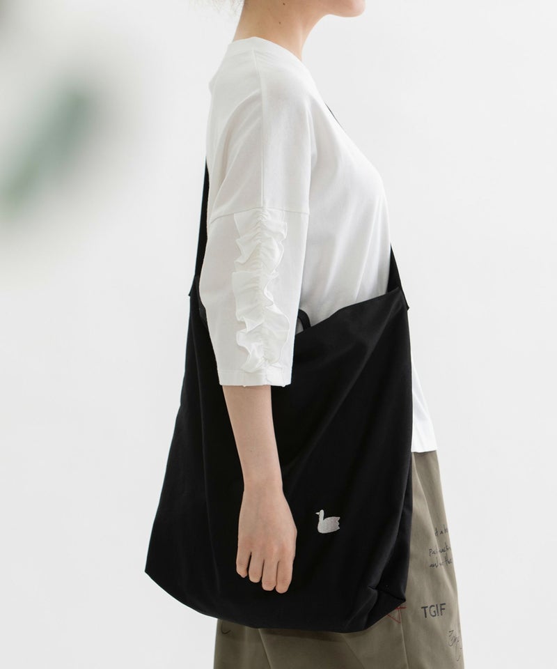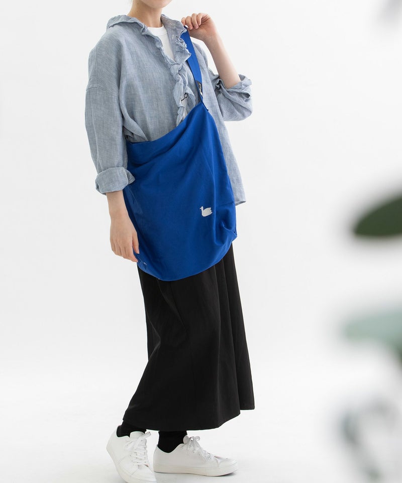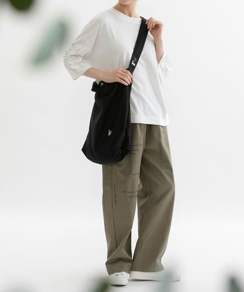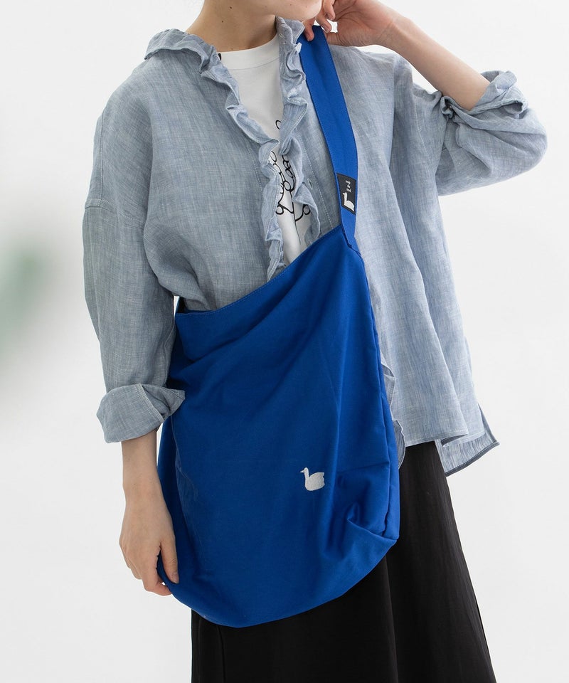 ツイルのLサイズショルダートート。大容量の斜め掛けが人気のタイプです。開け口はファスナー開きで、持ち手もついて運びやすい仕様になっています。