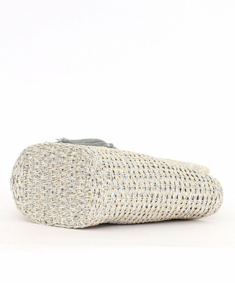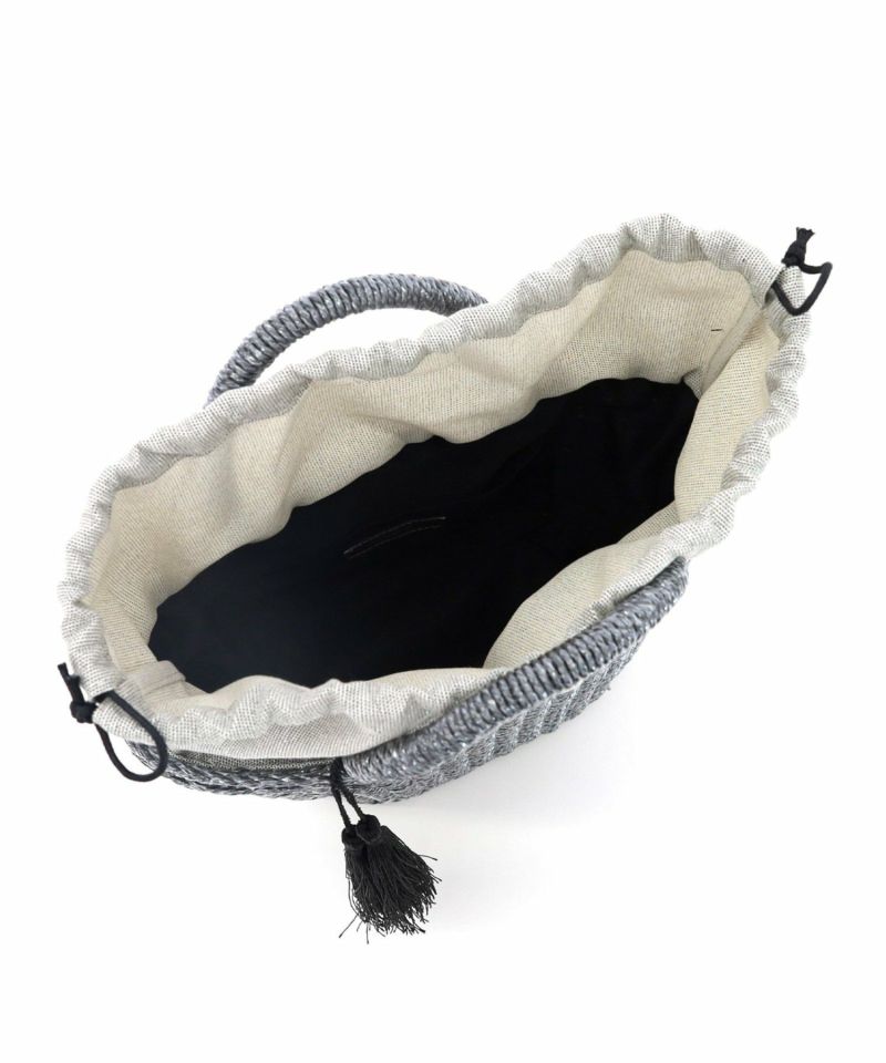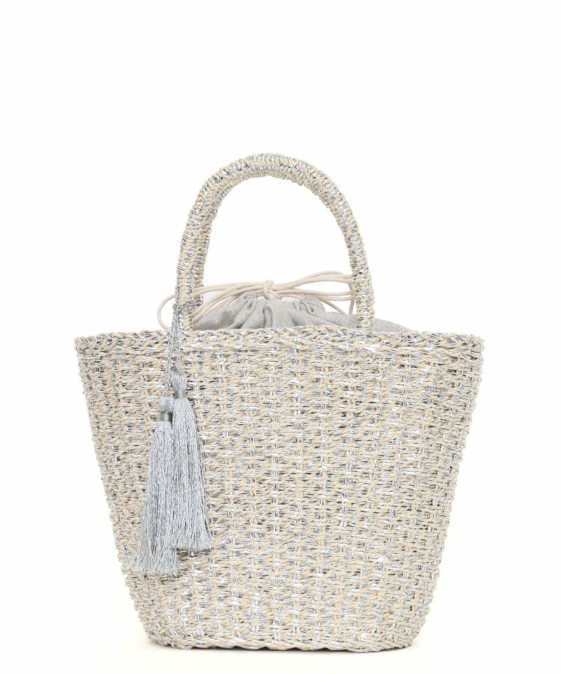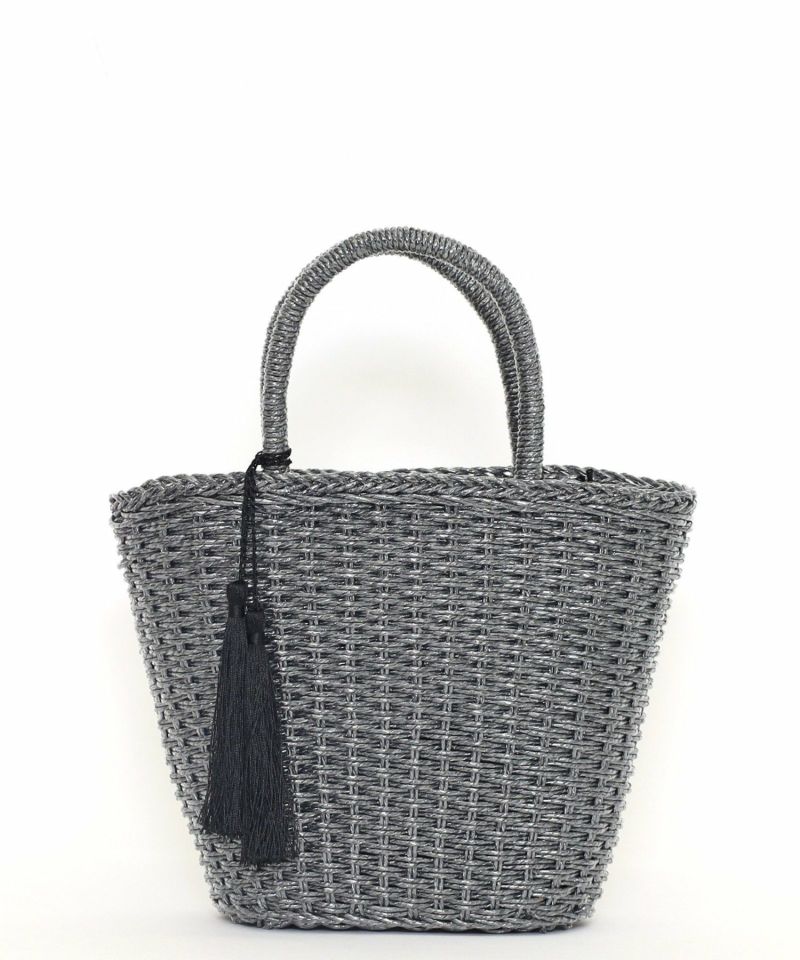 メタリックや透明のフィルムをペーパーに巻いて編み上げたサマーバッグです。