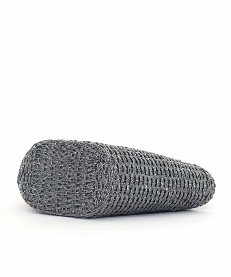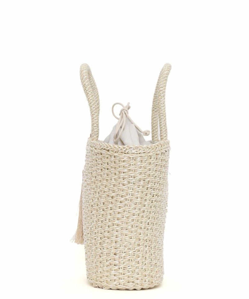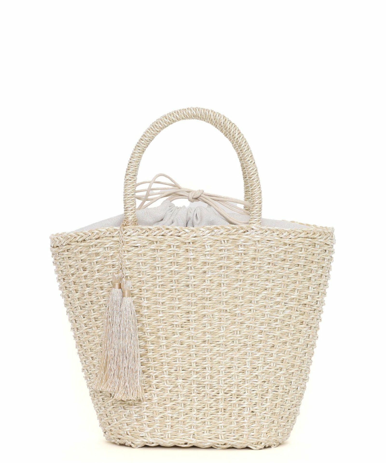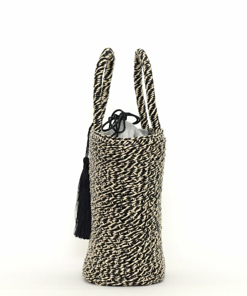 メタリックや透明のフィルムをペーパーに巻いて編み上げたサマーバッグです。