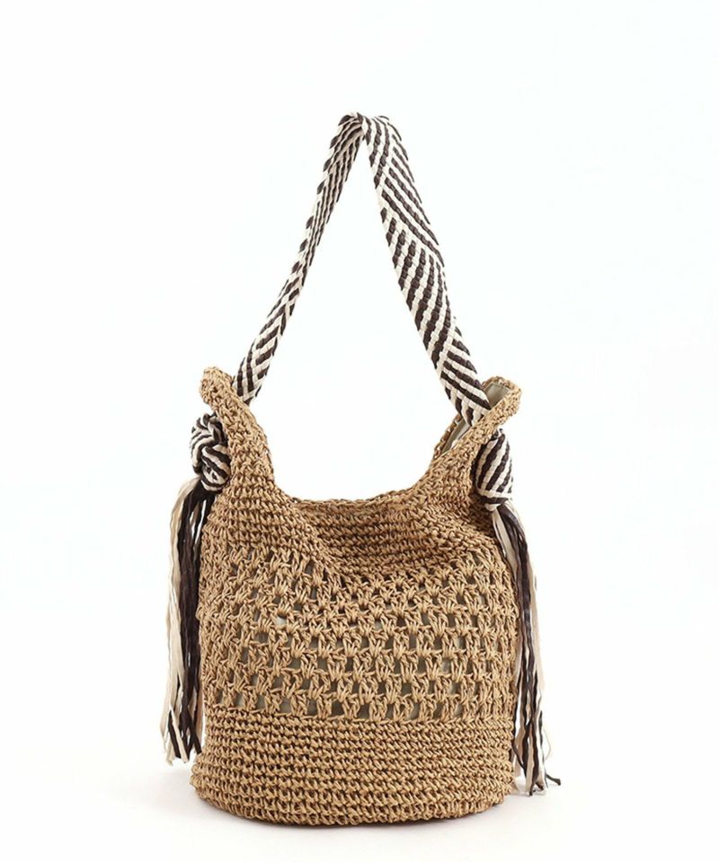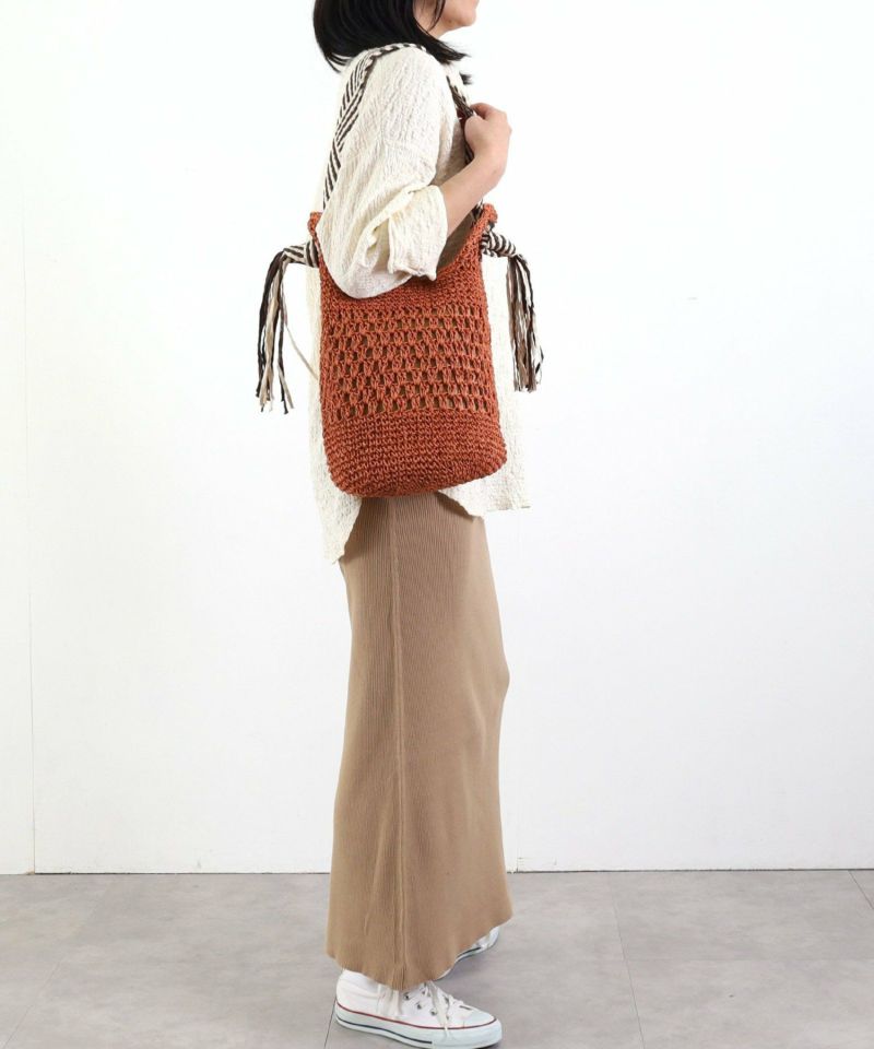 柄テープハンドルがエスニックで大人な印象のざっくりペーパートートバッグ