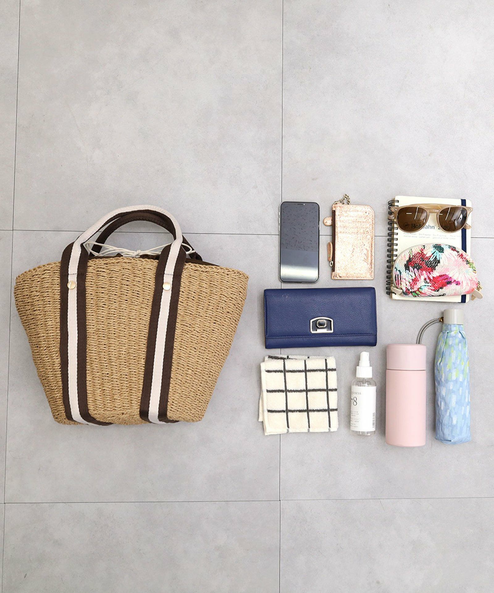 密に編んだペーパー素材ですので、しっかり自立するバッグです