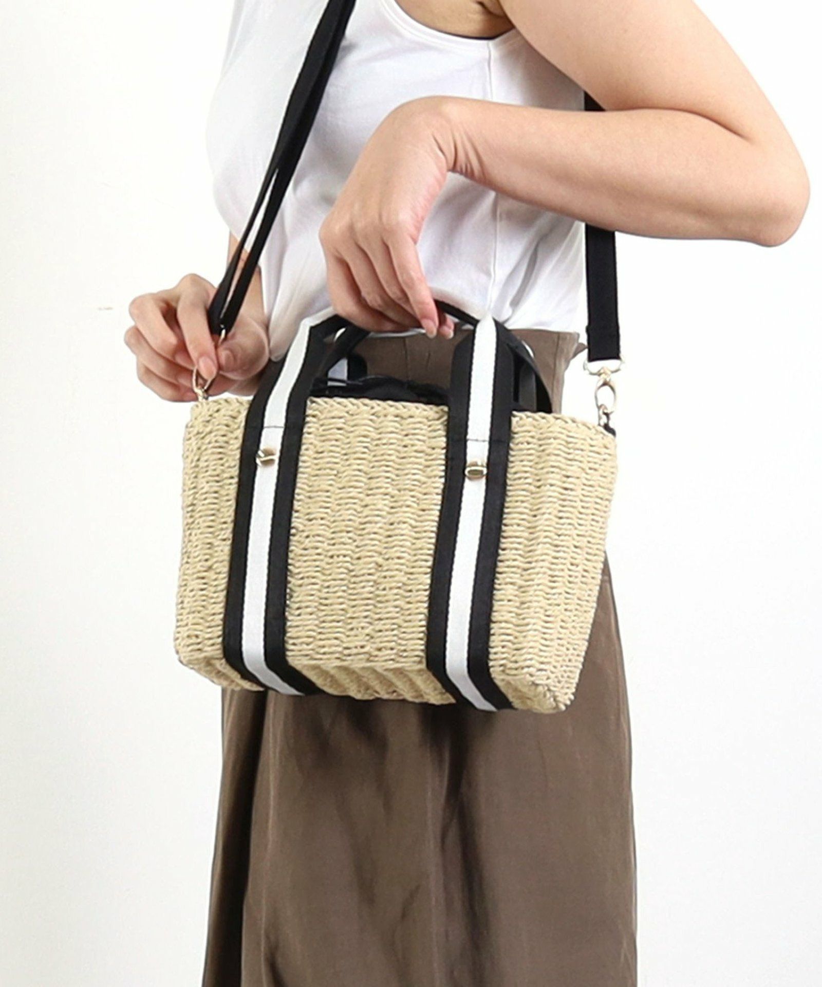 密に編んだペーパー素材ですので、しっかり自立するバッグです