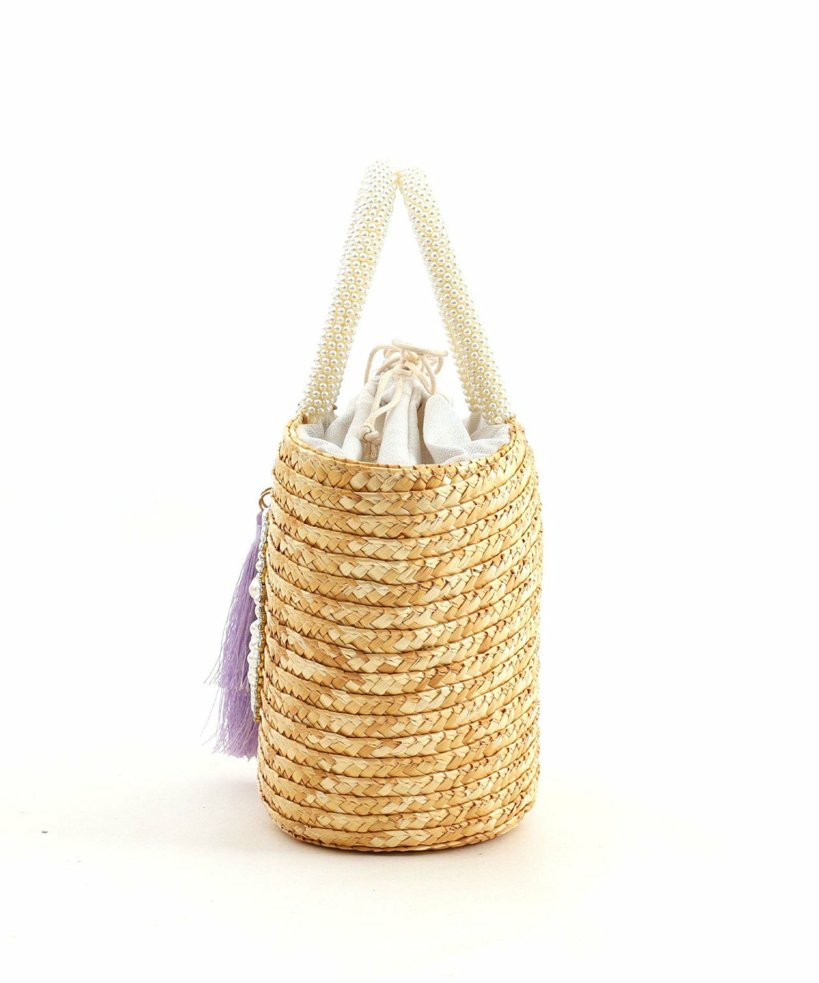 | 素材 | 表地 天然草木(麦わら) ビーズ アクリル 巾着 麻 綿 裏地 ポリエステル |